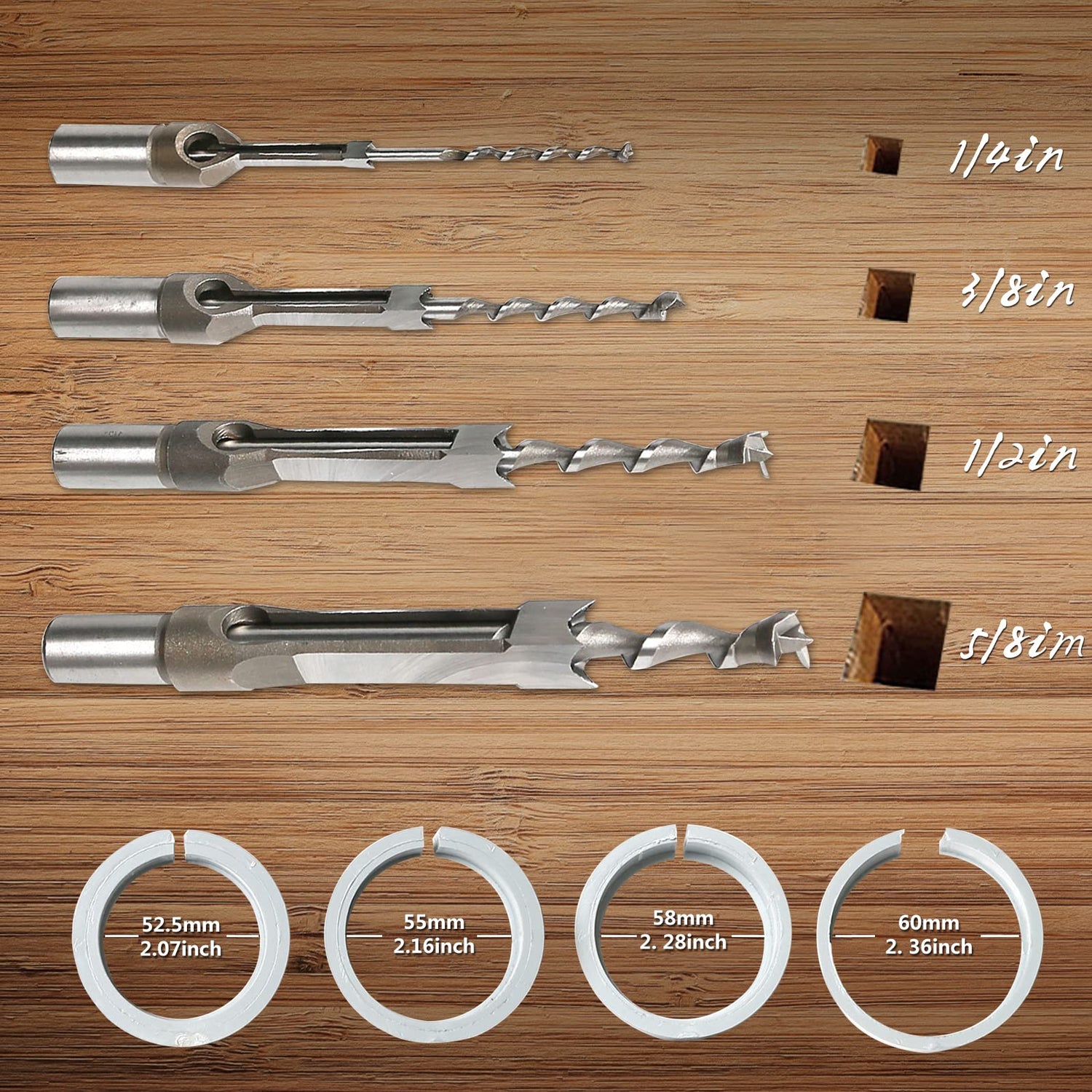 (2)This product has certain size requirements for the matching table drill, the group is suitable for drill diameters of 60 mm, 58 mm, 55 mm and 52.5 mm (2.07Inch, 2.16Inch, 2.28Inch and 2.56Inch ).