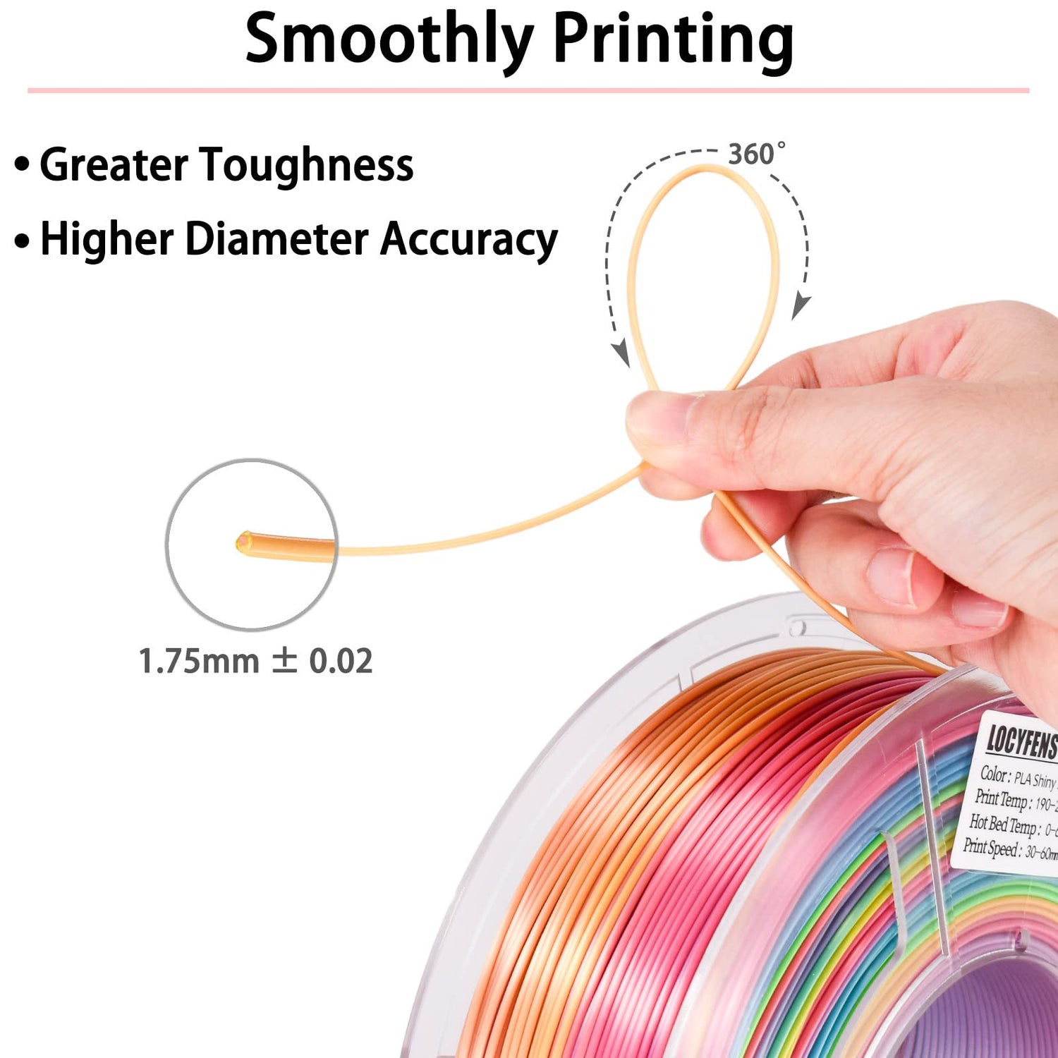 LOCYFENS Silk PLA Filament Multicolor, 3D Printer Filament Rainbow PLA Filament 1.75mm +/- 0.02mm, 3D Printing Filament 1kg/2.2lbs
