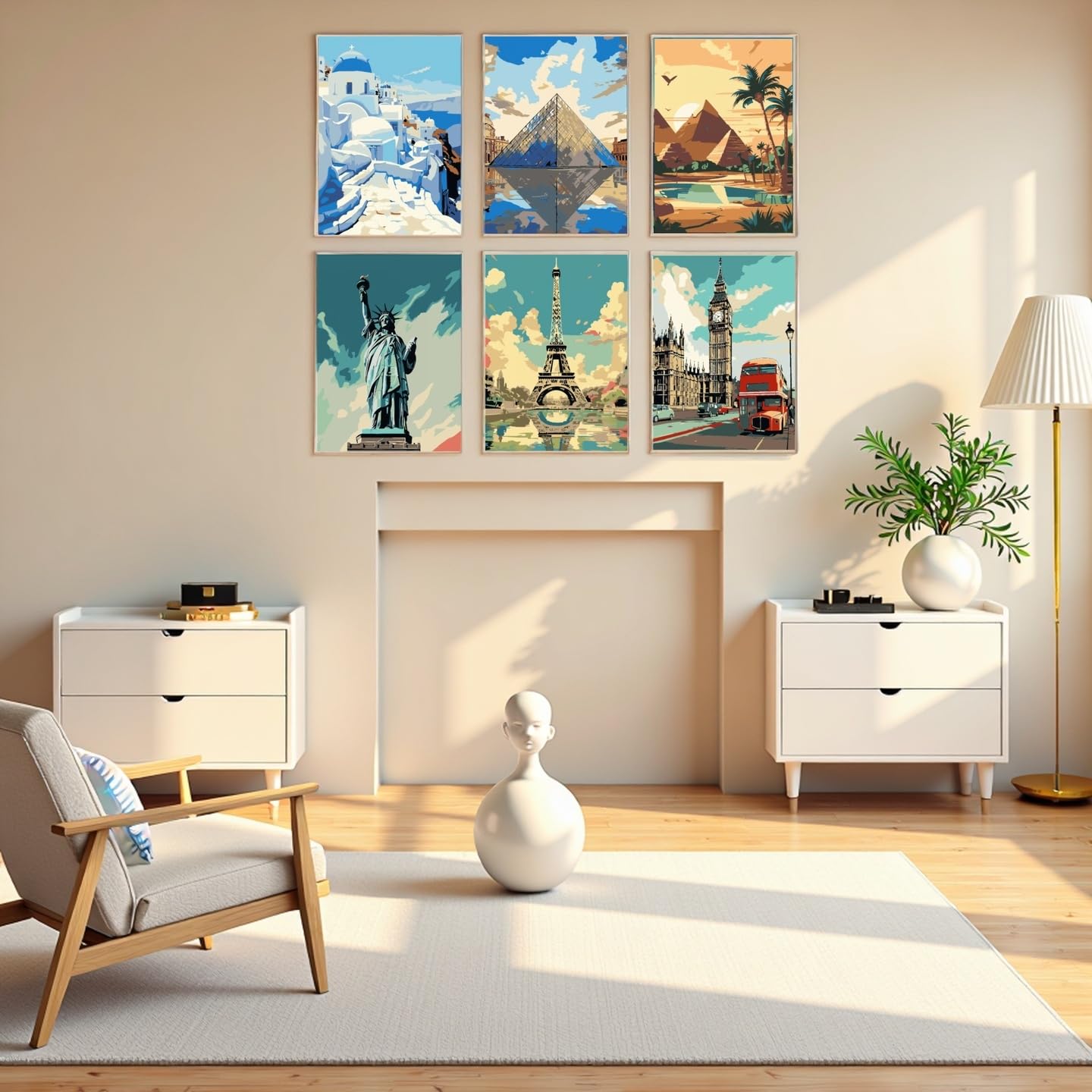 - COMPLETE KIT: Transform your living space into an artistic sanctuary with this captivating adult paint by number kit, set of 6 iconic world landmark paintings including Santorini, Louvre, Pyramids, Eiffel Tower, Big Ben, and Statue of Liberty scenes for paint-by-numbers