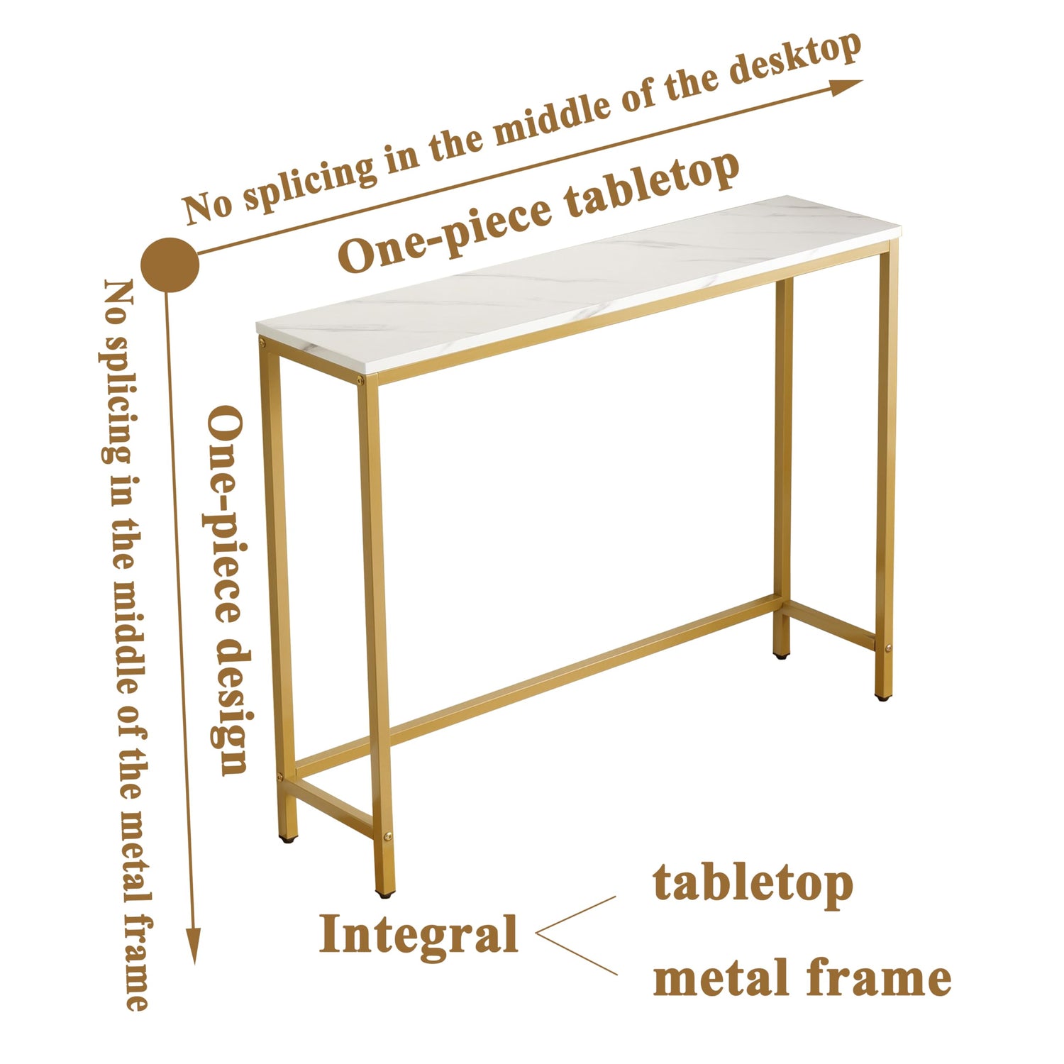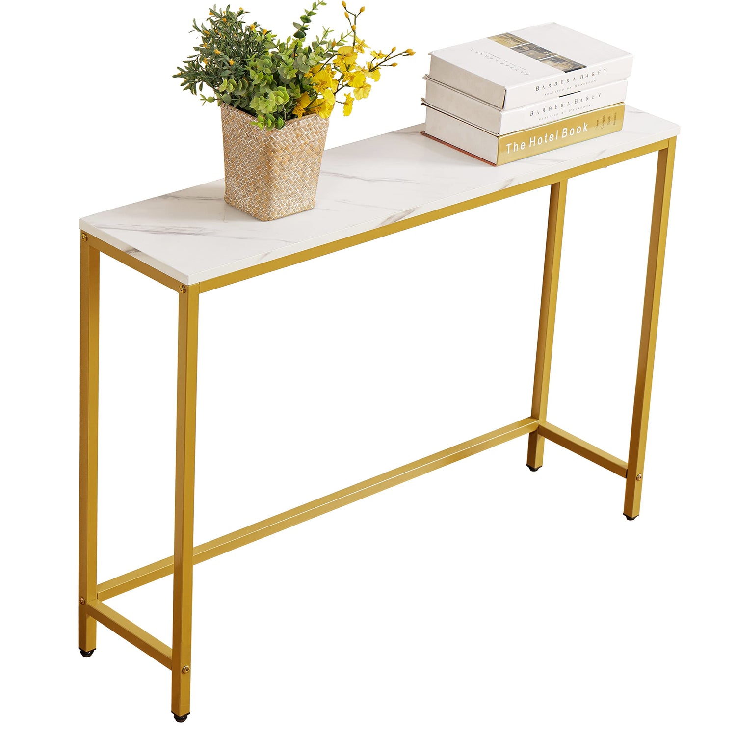 - Sturdiness: The high-grade medium density fiberboard (No splices) and strong metal frame (No splices) with adjustable feet on each leg, this faux marble console table keep items on it standing steady. Weight capacity: 110 lbs.
