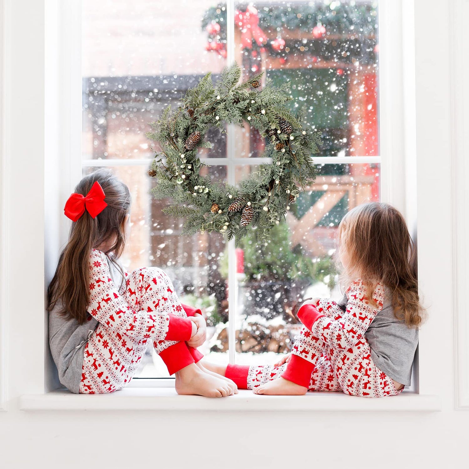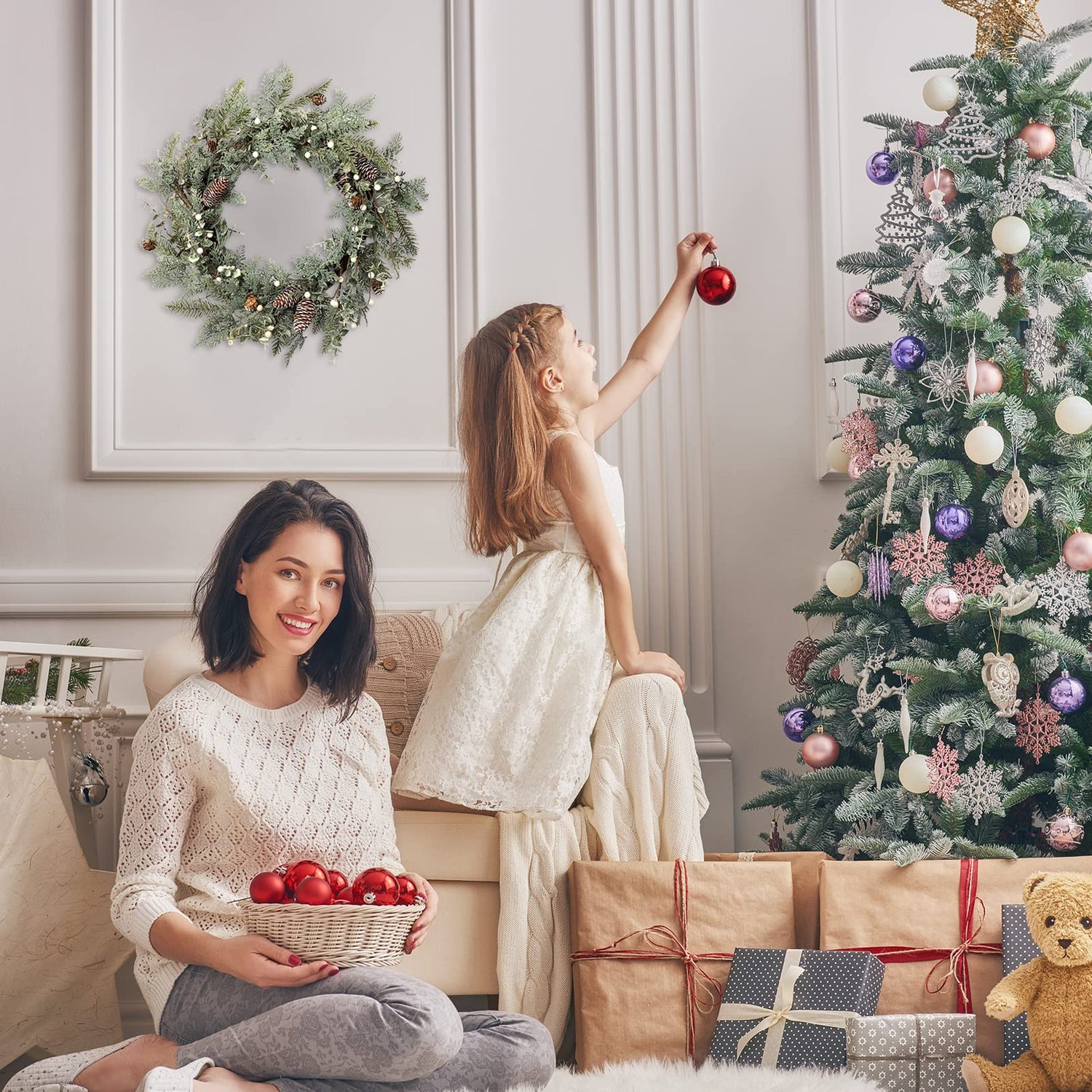 LOHASBEE Artificial Christmas Wreath, 24" Pine Cone Grapevine Flocked Glitter Fir Wreath with White Berries for Christmas Home Front Door Hanging Wall Window Decor