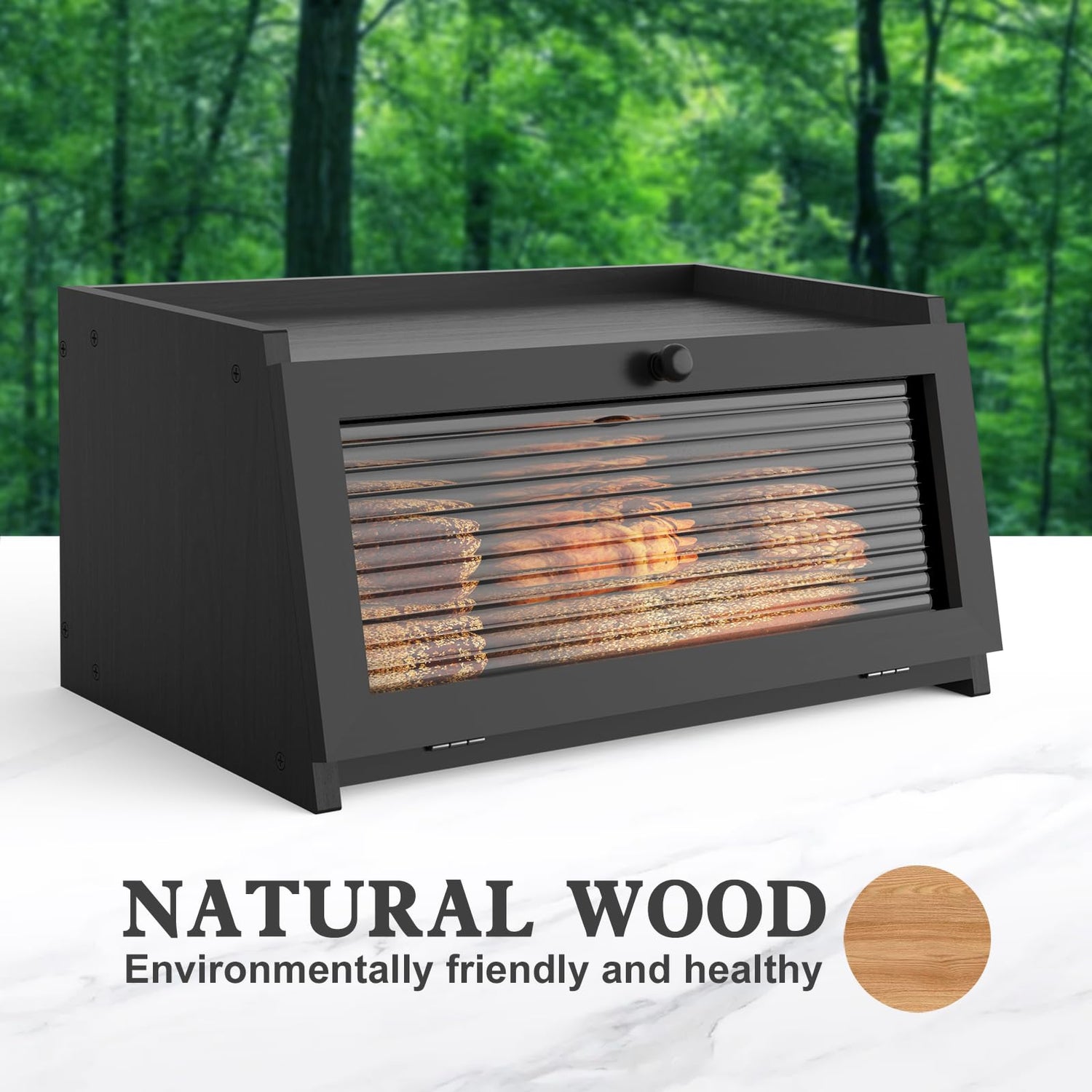 LOHASOK Bread Box for Kitchen Countertop Large Bread Box Farmhouse Bread Container Bread Storage with Window Bread Holder Black