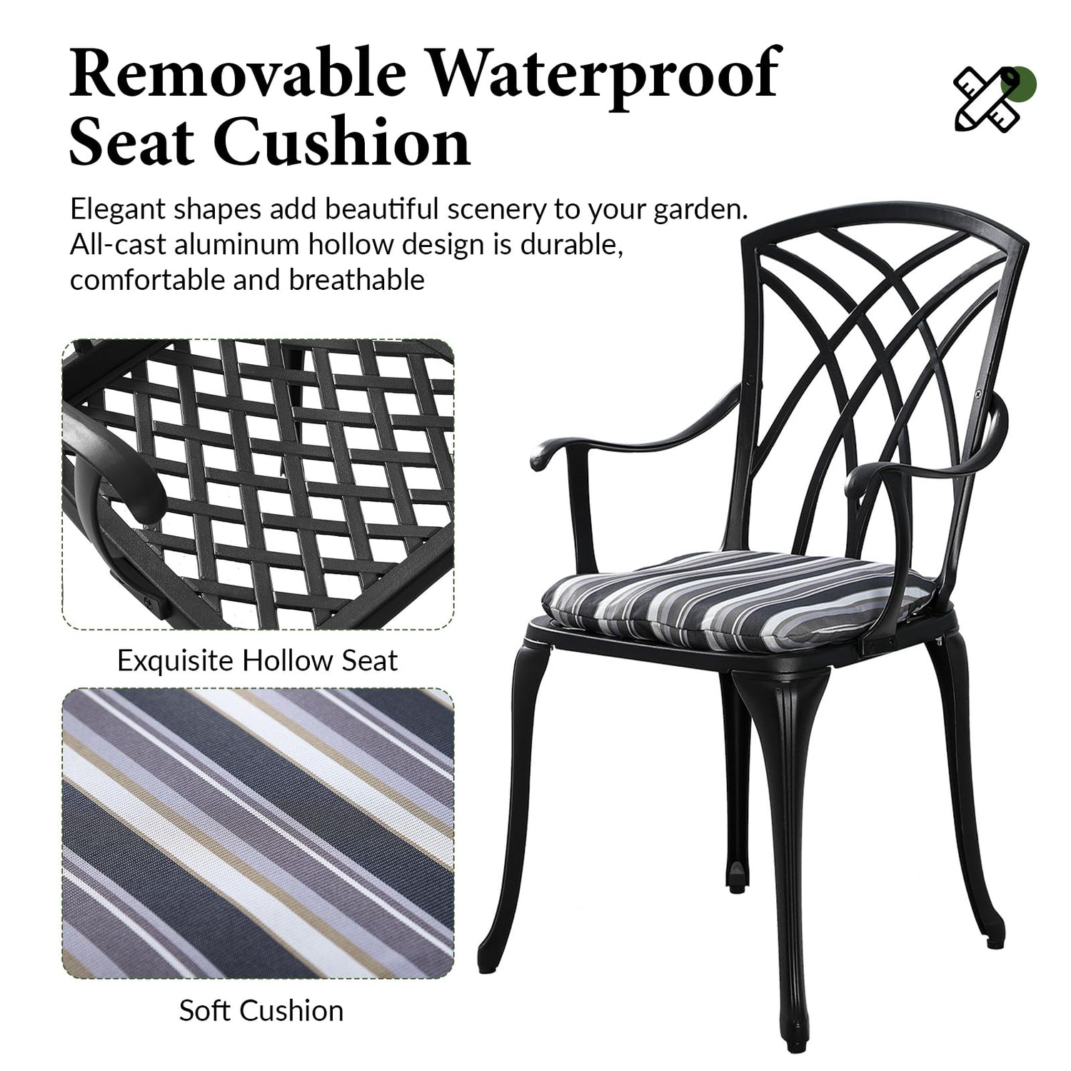 - 【Ultra-Sturdy Frame Design】Our courtyard café set features a powder-coated cast aluminum frame with weather-resistant, waterproof, rust-proof, and fade-resistant properties. The stylish, modern stretch-woven design comes with pre-installed adjustable footpads to ensure stable assembly. Assembly is extremely quick