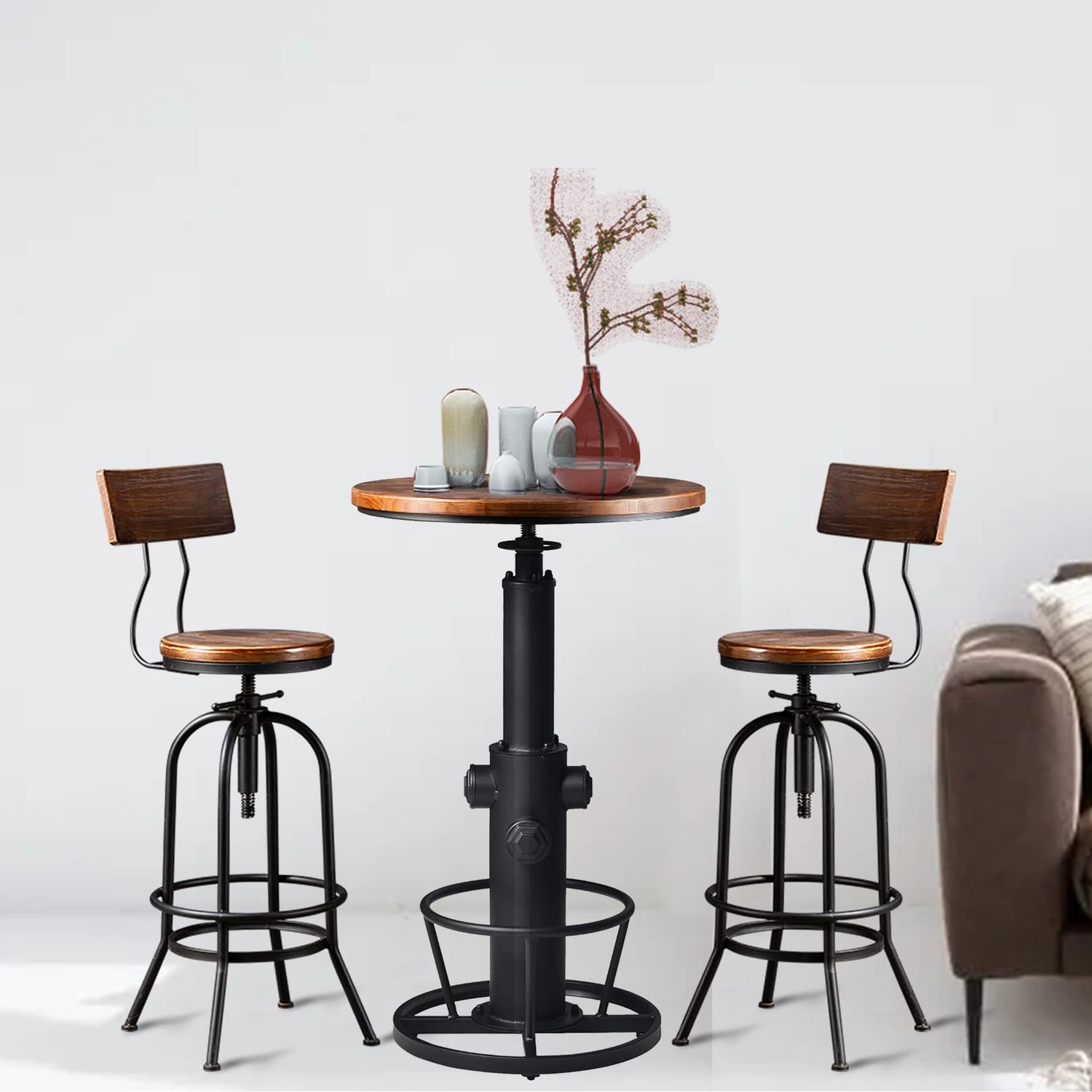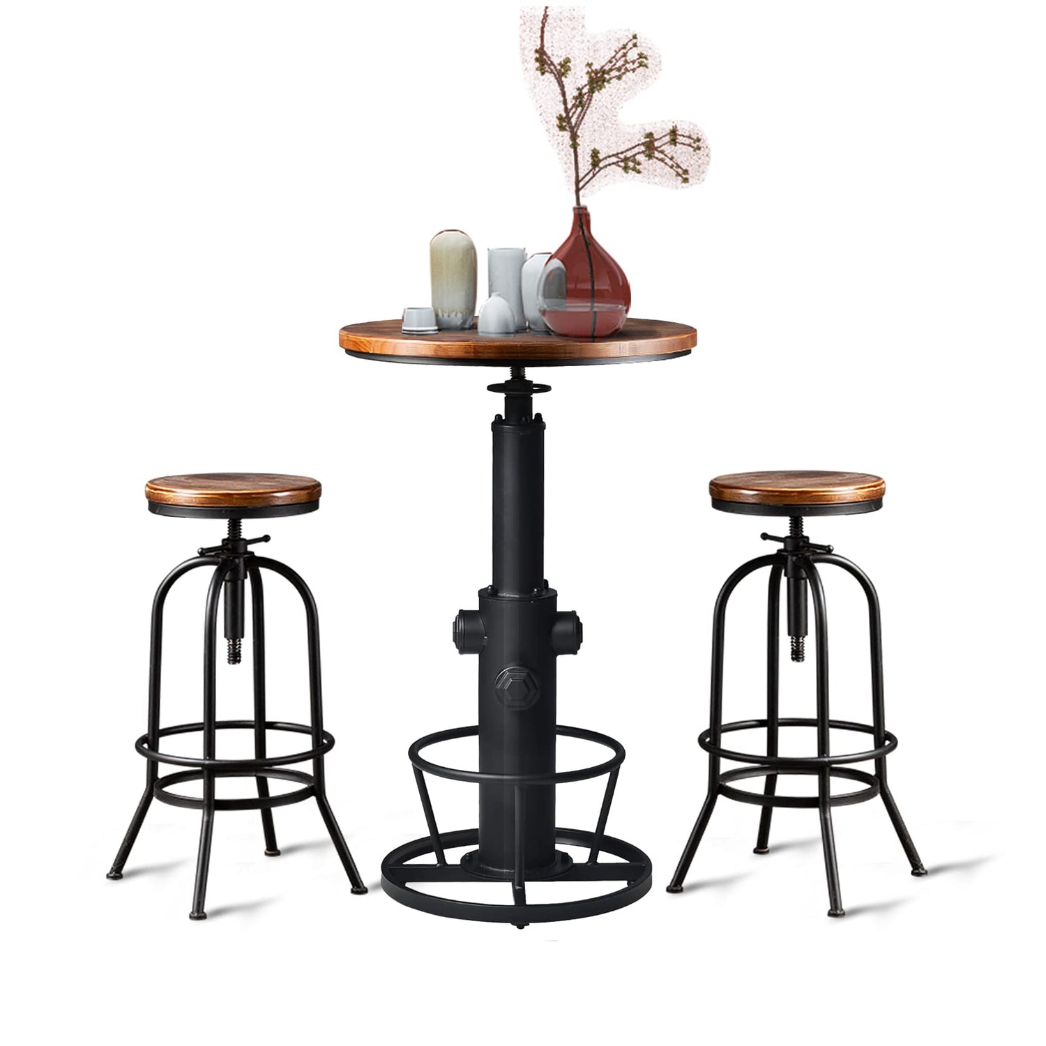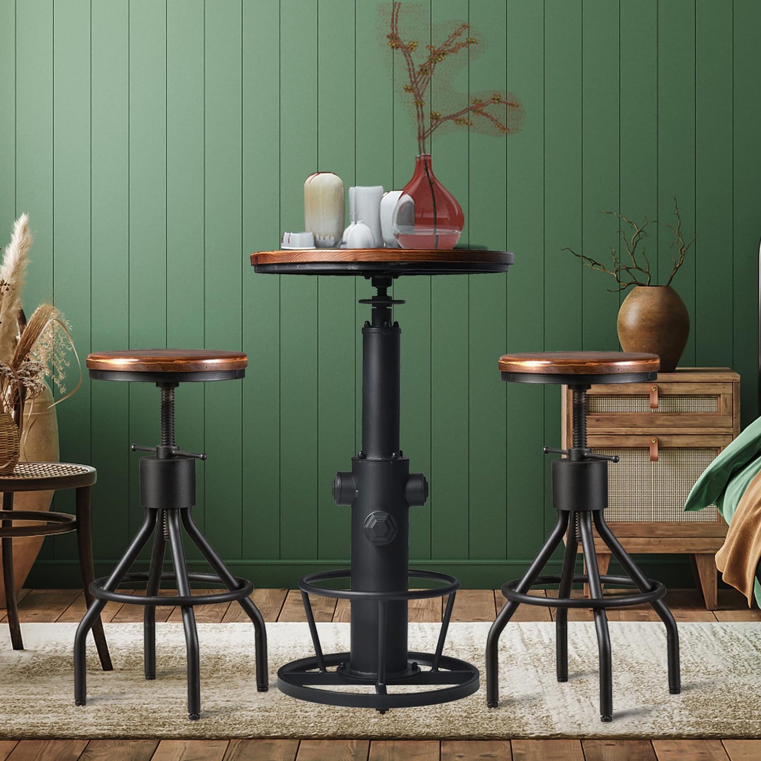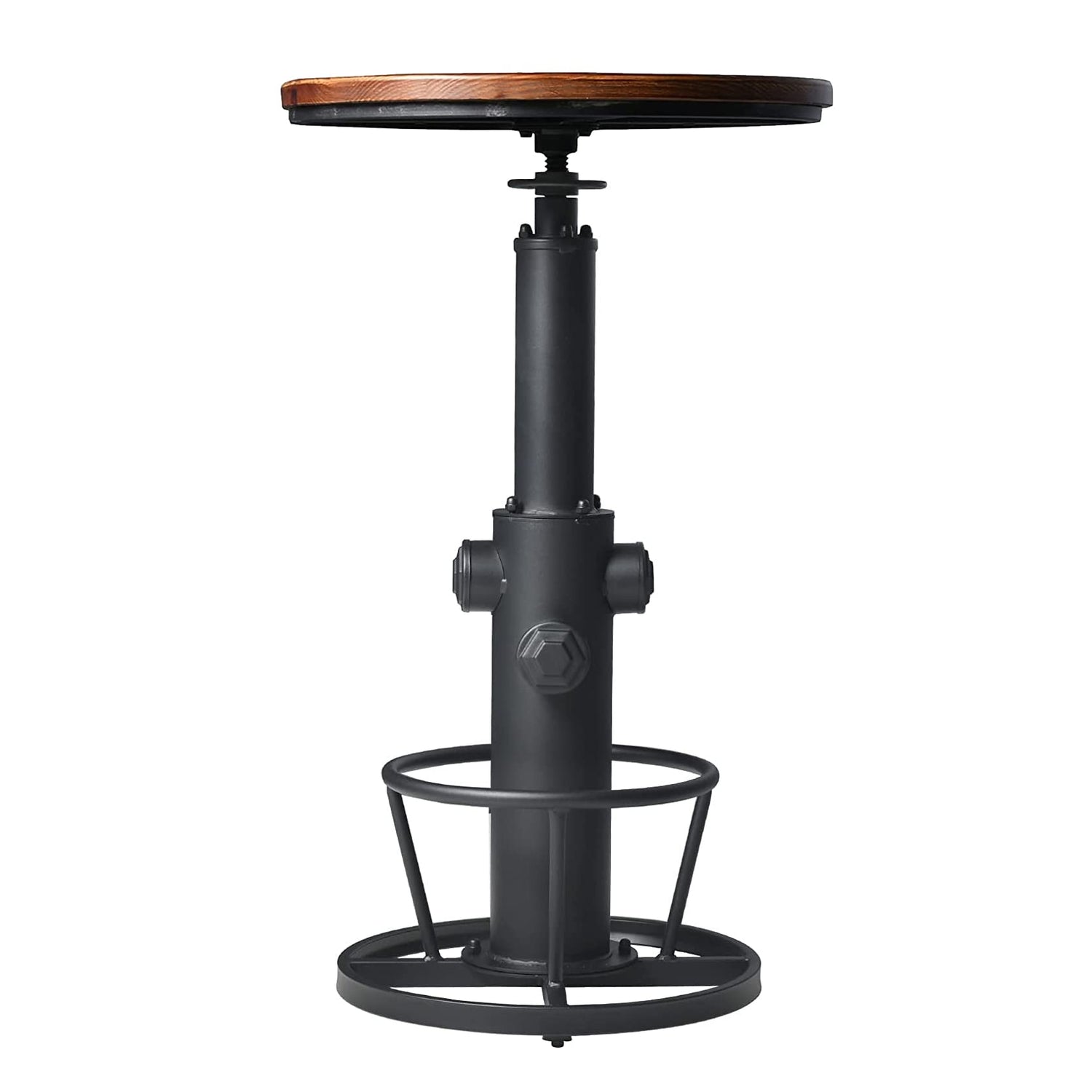 LOKKHAN Industrial Bar Table 38.6"-48.4" Height Adjustable Swivel Round Wood Tabletop 23.7" Dia, Kitchen Dining Office Coffee Bistro Pub Table