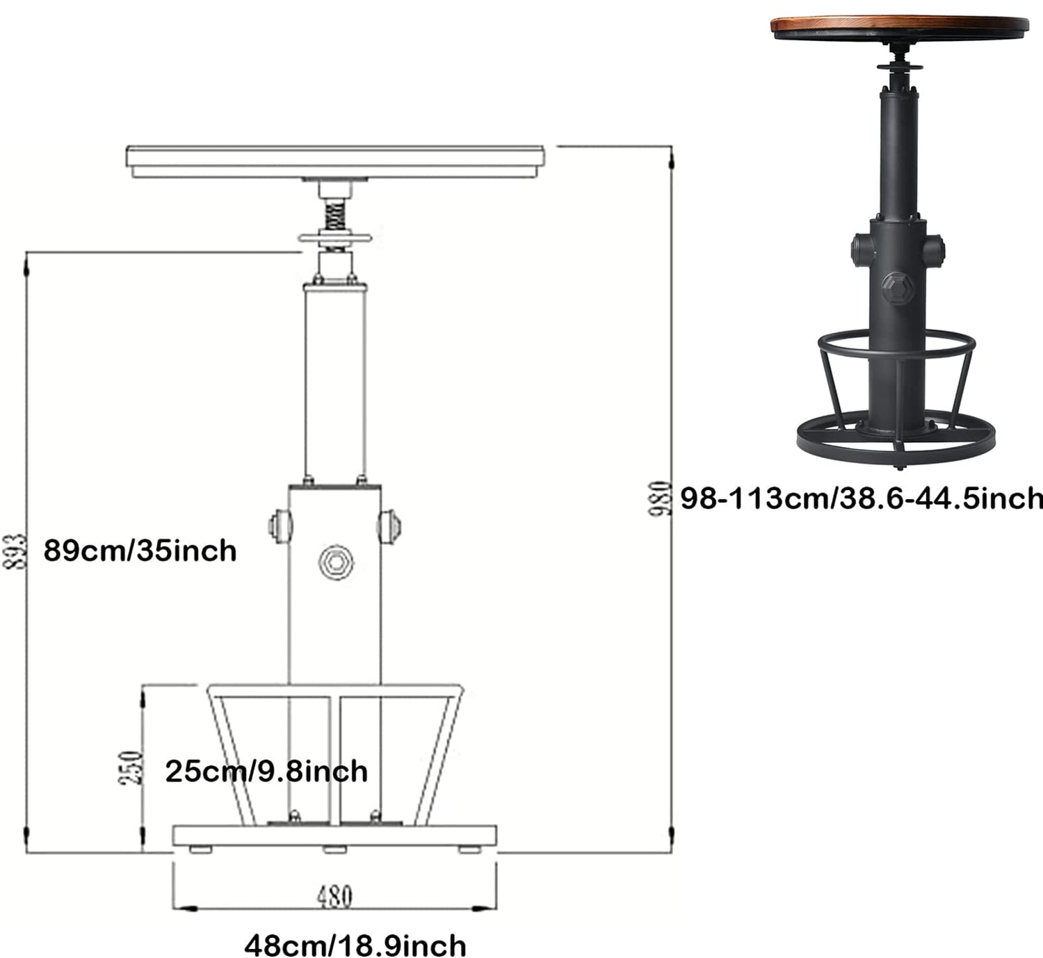 - Dimension- Size of Wood (Approx.):23.63 Inch x 1.2 Inch(Dia.xThickness);Adjustable Height:from 38.6 Inch to 44.4 Inch;Width of Base:21.66 Inch.