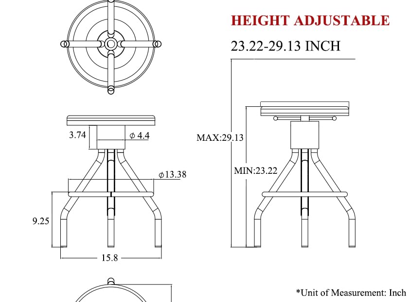 - ✔Stool Height Adjustable from 23 inch to 29 inch,is available both as kitchen counter height stool and as bar height stool.Just by spin the seat after loosening the screws.