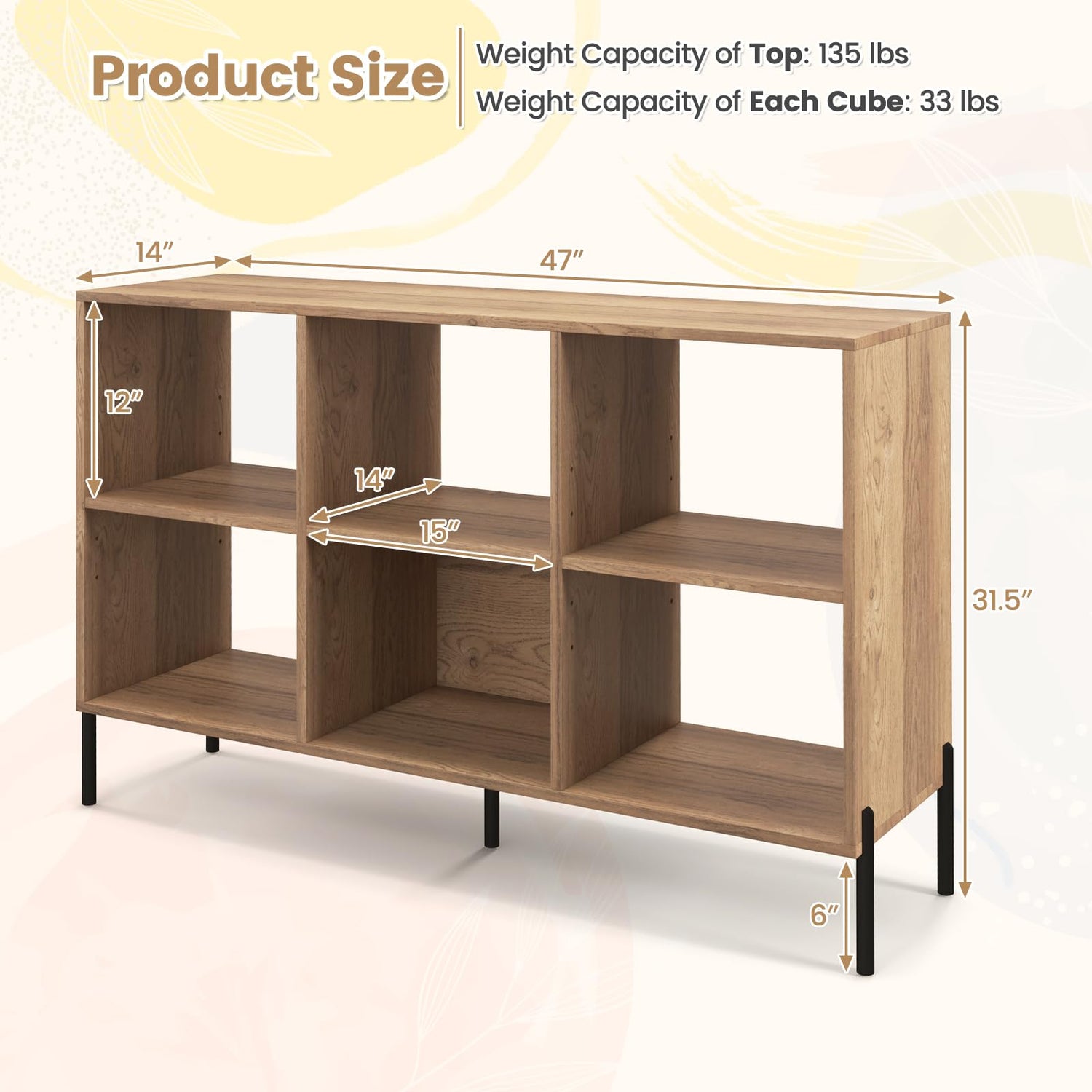 - Open Storage & Display Space: This modern bookcase features 6 cubes and wide cabinet top, offering easy access to those frequently used items like books, photos, and ornaments. Besides, there are 2 5-position adjustable shelves to enhance your organization and display options.