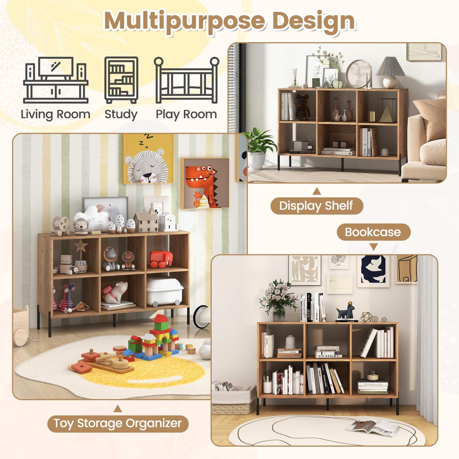 Are you looking for a versatile storage cabinet to expand your storage space? This bookcase deserves a try. 6 cubic open shelves and wide cabinet top offer large & sorted storage space for your books, handicrafts, and magazines, etc. Featuring 2 adjustable shelves, you can freely adjust the position of shelves up and down, or remove the shelf to create a single cabinet to store large articles. In addition, for reliable usage, you can fix the bookcase to the wall to prevent wobbling and enhance safety. All in all, the multipurpose wooden bookshelf is a reliable addition to your home.