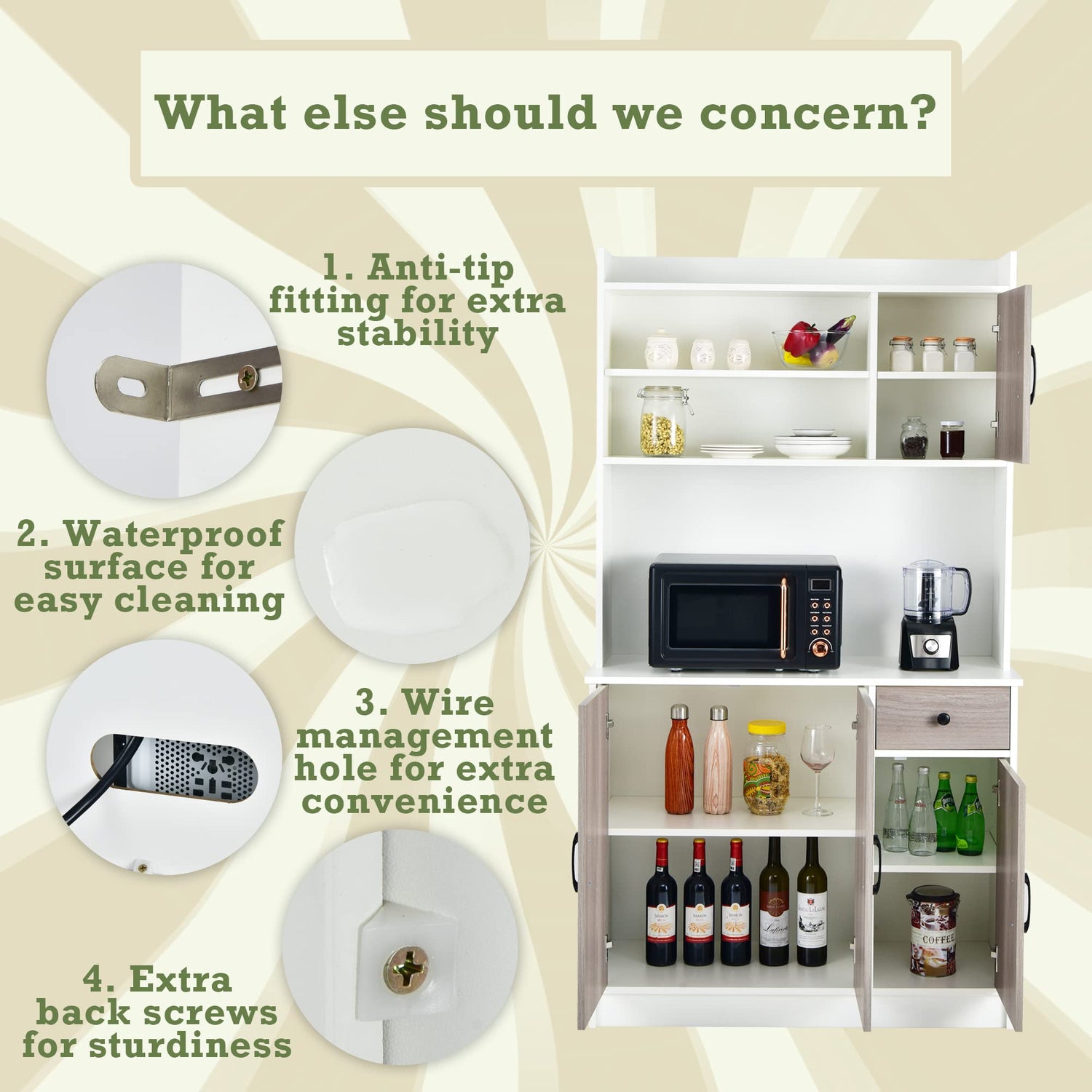 LOKO Kitchen Pantry Storage Cabinet, Kitchen Buffet with Hutch with Adjustable Shelves and Cable Management Hole, Tall Kitchen Hutch with Anti-tip Devices, 39.5 x 15.5 x 71 inches (White)