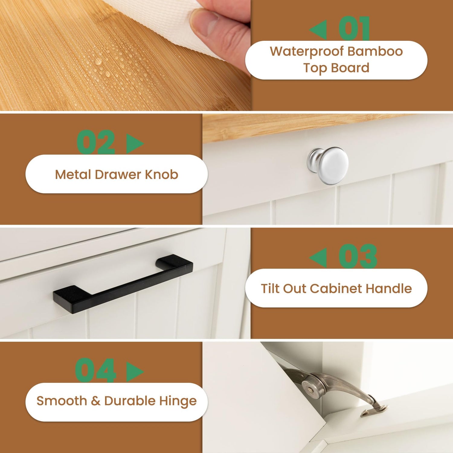LOKO Tilt Out Laundry Hamper Cabinet, Freestanding Bathroom Storage Cabinet with Removable Basket, 10 Gallon Hidden Wood Laundry Cabinet with Drawer & Bamboo Countertop, for Bedroom, White