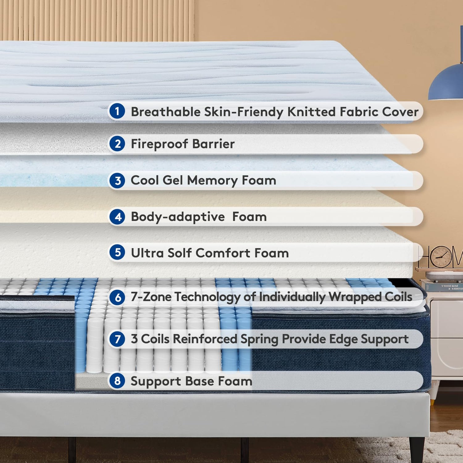 • Pocket Coil System for Motion Isolation: The most advanced individually 7-zone Pocket Spring system in mattress king not only provides excellent spine alignment and edge support, but also allows for Zero Motion Transfer as each coil is pocketed and individually wrapped to prevent tangling, avoiding movement interference between partners