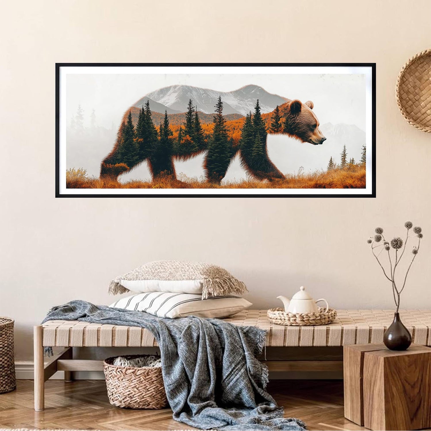 LOMSIOY 5D Large Diamond Art Kits for Adults, Bear Diamond Painting Kits for Beginner, Forests Diamond Art with Round Full Drill Rhinestone Crafts Gem Arts for Home Wall Decor 31.5 x 11.81 inch