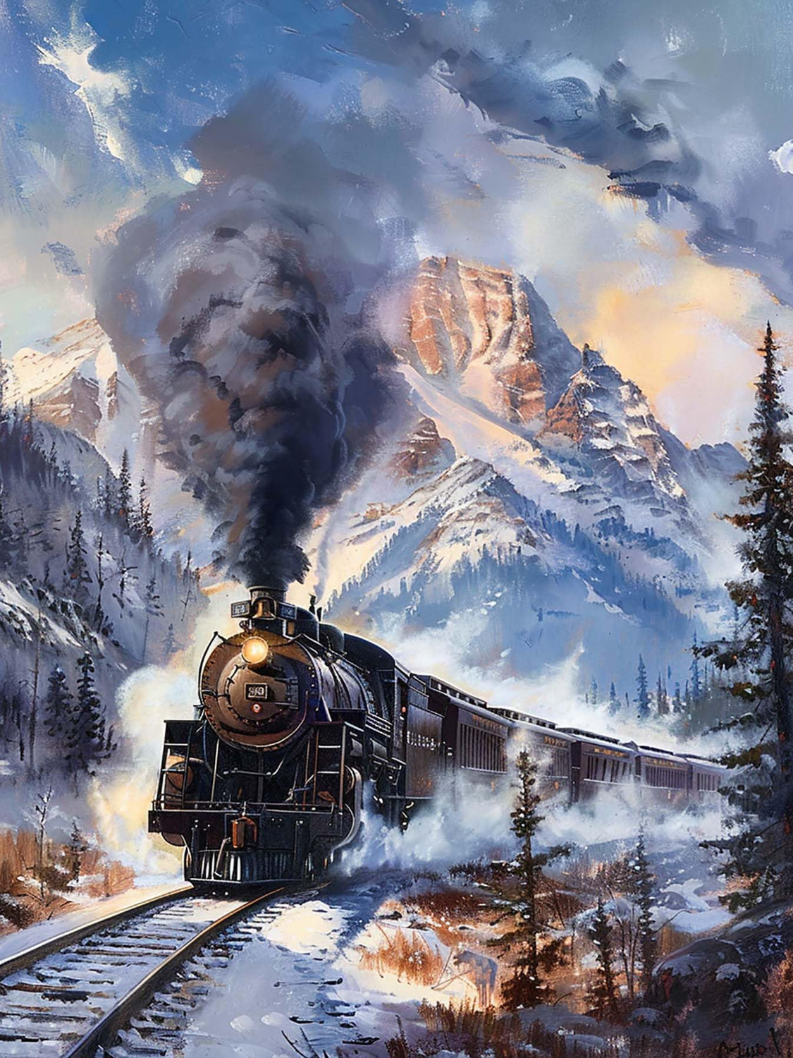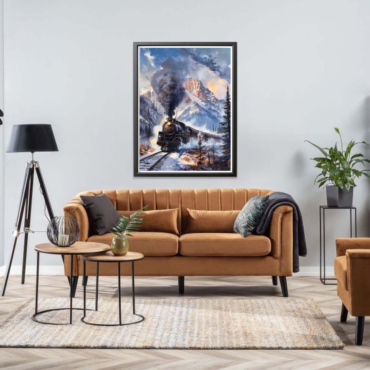 LOMSIOY DIY 5D Diamond Art Kits for Adults, Train Diamond Painting Kits for Beginner, Snow Scenery Diamond Art with Round Full Drill Rhinestone Crafts Gem Arts for Home Wall Decor 12 * 16 inch