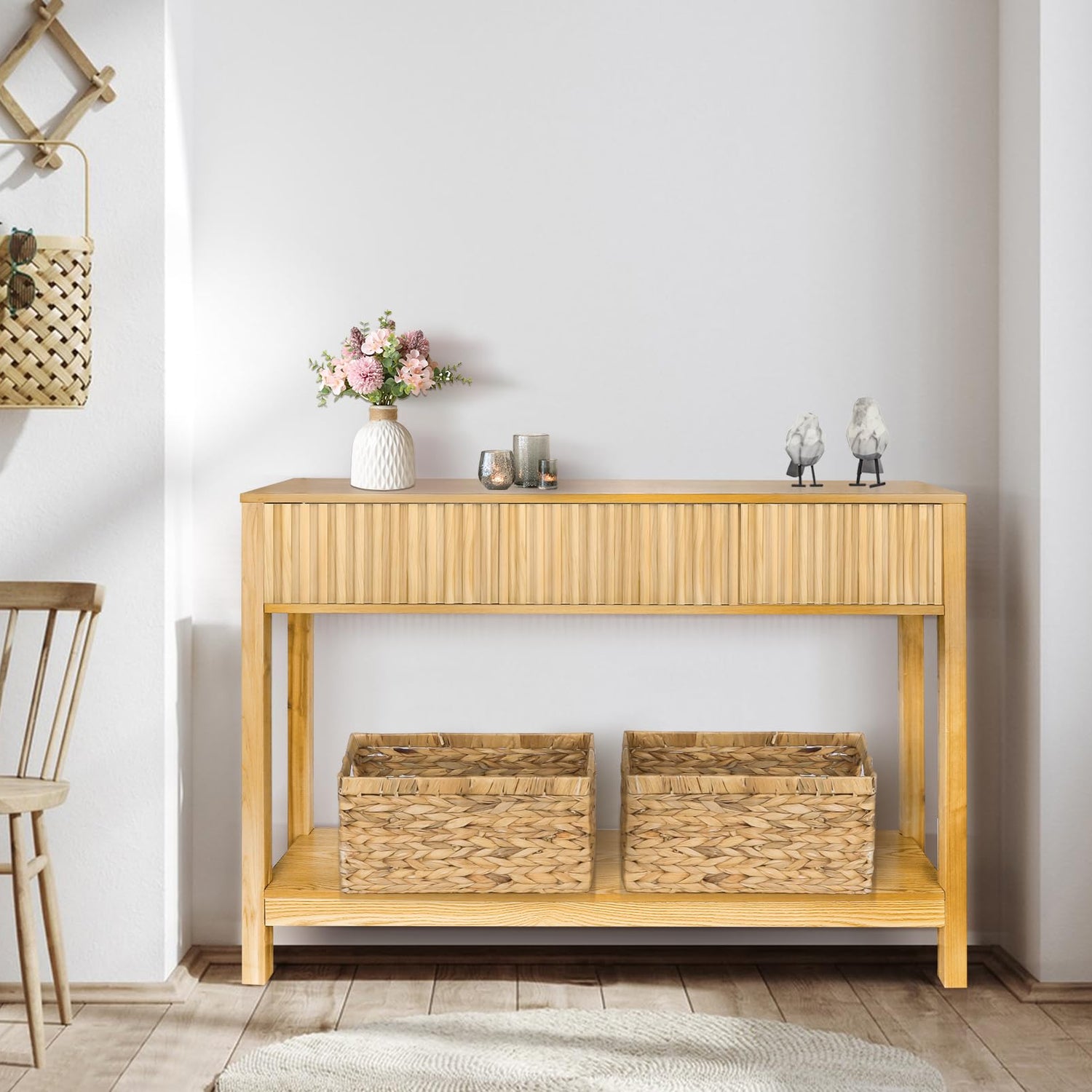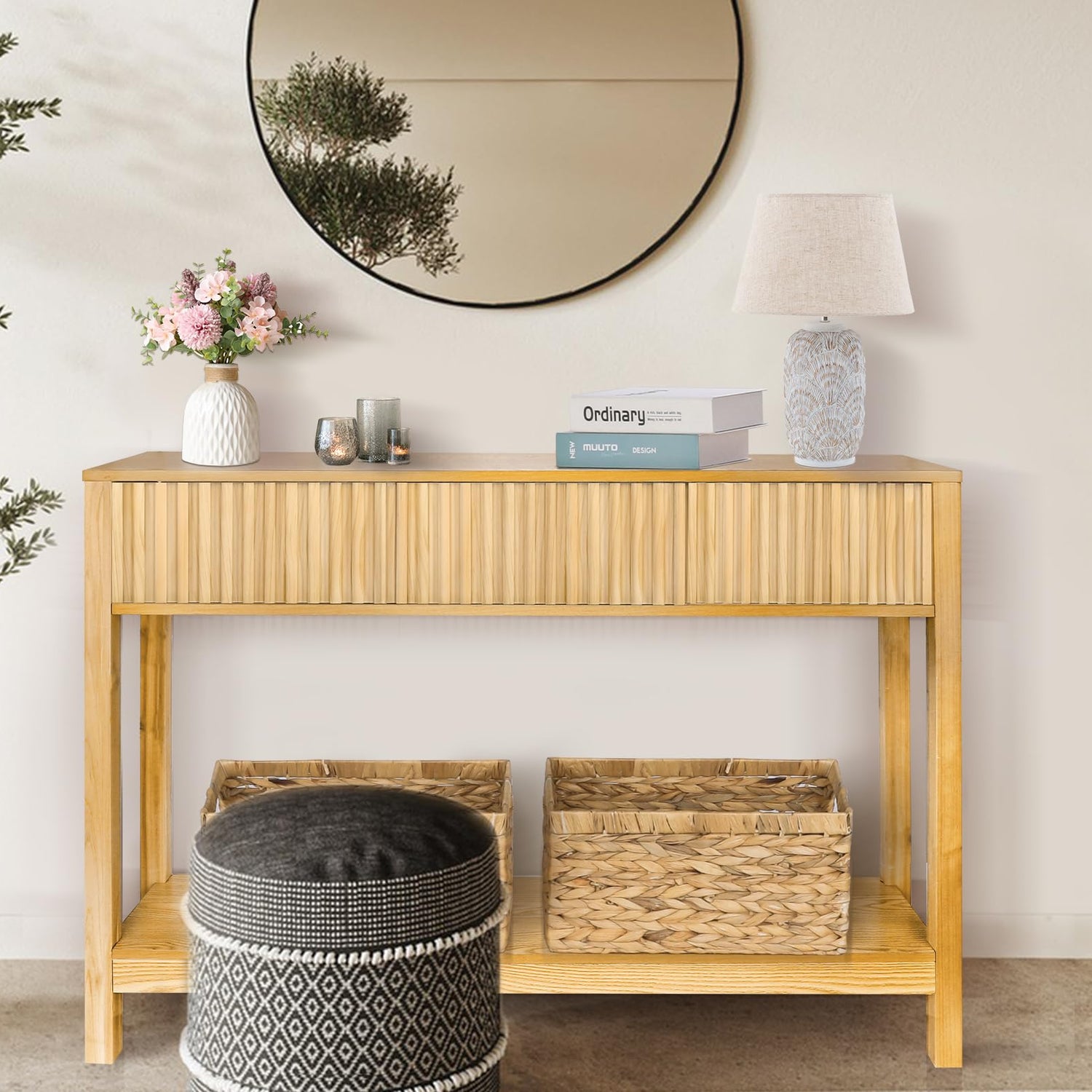 - 【Multi-purpose Foyer Table】– Use it as a console table in the entrance, a sofa table in living room, a vanity table in bedroom, TV stand in living room or a buffet table in dining room. Our fluted console table fits seamlessly into any space, enhancing the overall decor while offering practicality.