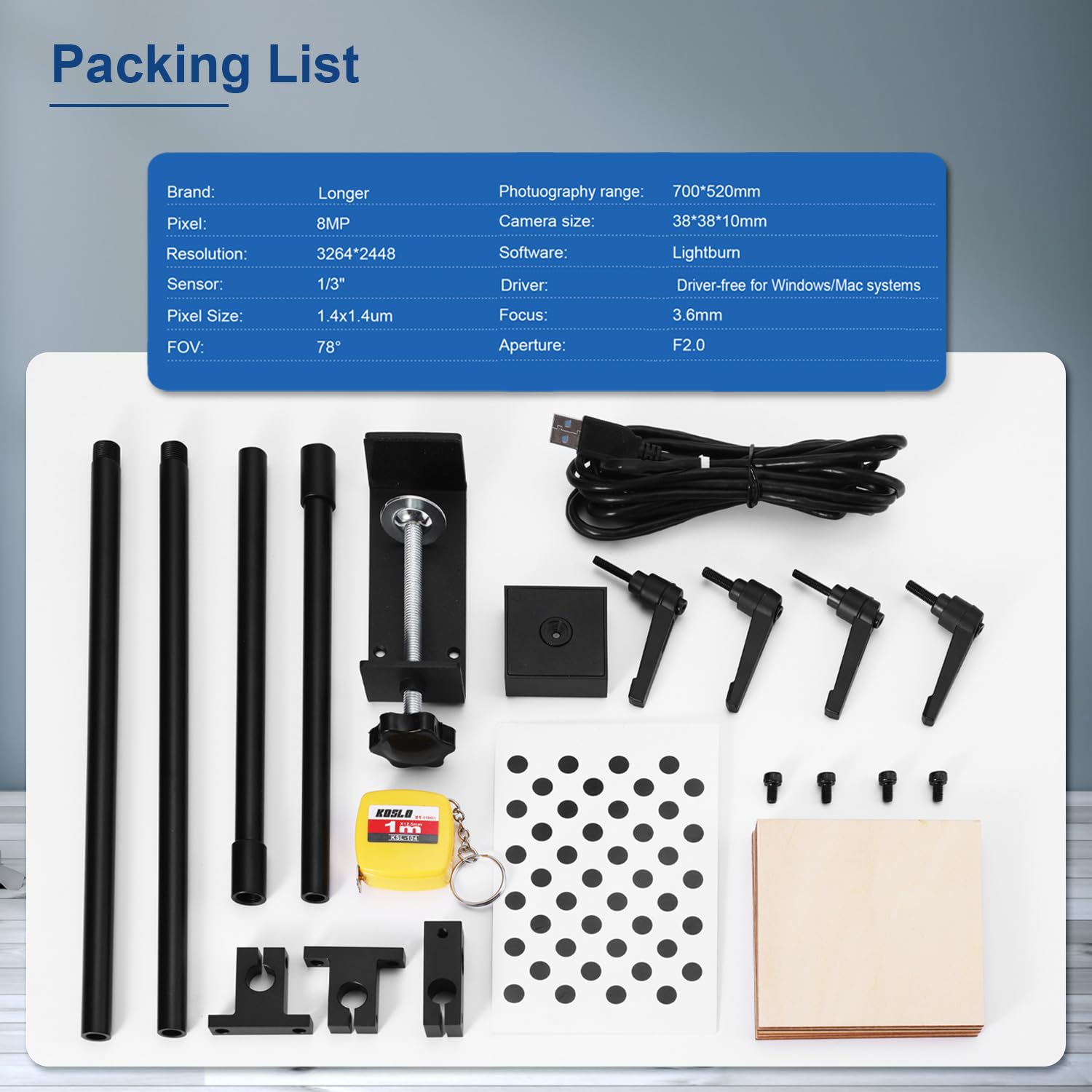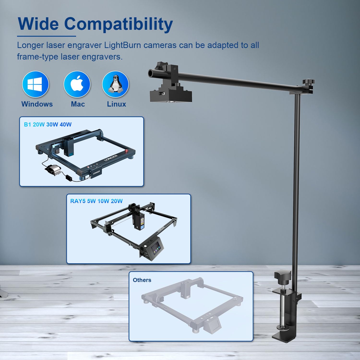 - LONGER Lightburn Camera, Camera Kit for Laser Engraver, LONGER Lasercam for Laser Engraving/Cutting Machines, Remote Monitor Control, Positioning, Flame Detection, Automatic Time-Lapse Video