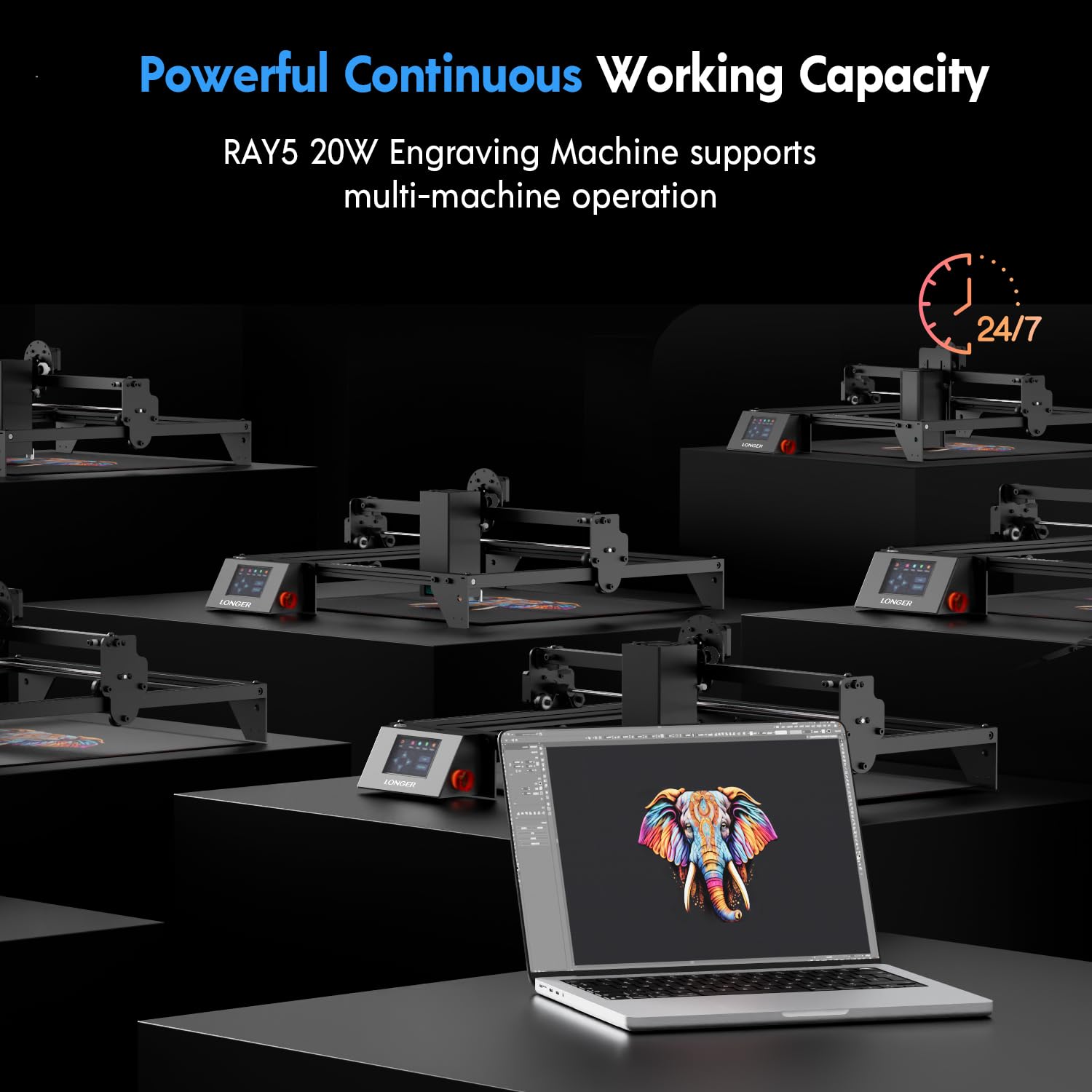 - High Power Cutting Capability: Longer RAY5 20W laser engraver enables faster and more efficient engraving and cutting tasks, saving customers time and costs.