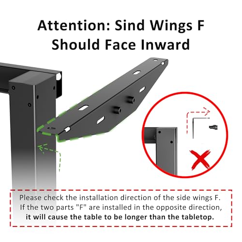- Attention: Sind wings "F" should face inward. If the two parts "F" are installed in the opposite direction, it will cause the table to be longer than the tabletop.