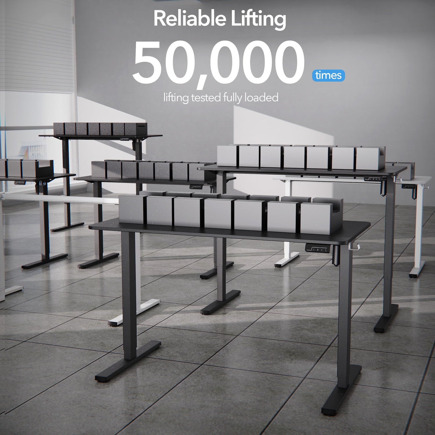• Outstanding Stability: The electric standing desk has a sturdy solid steel frame with aerospace-grade lifting column connectors (still stable & secure after testing 50,000 times).