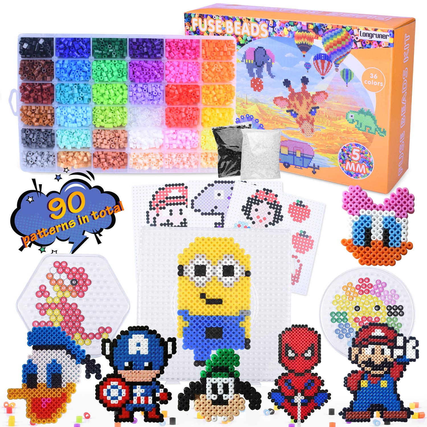 Longruner 10000, 36 Colors Fuse Beads Kit 5mm DIY Art Craft Toys for Kids with 4 Pegboards, 60 30 Pattern Paper| B, 10000pcs