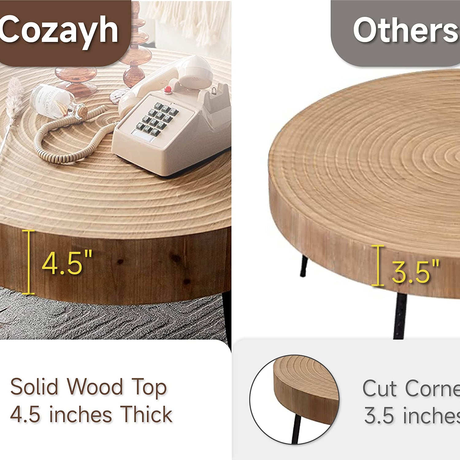 - ✅The imitated retro wood ring pattern table set atop black metal legs will instantly glam up your living space .The wood coffee table is just right for any master or living room , whether you love coastal style or skew more toward boho and farmhouse.