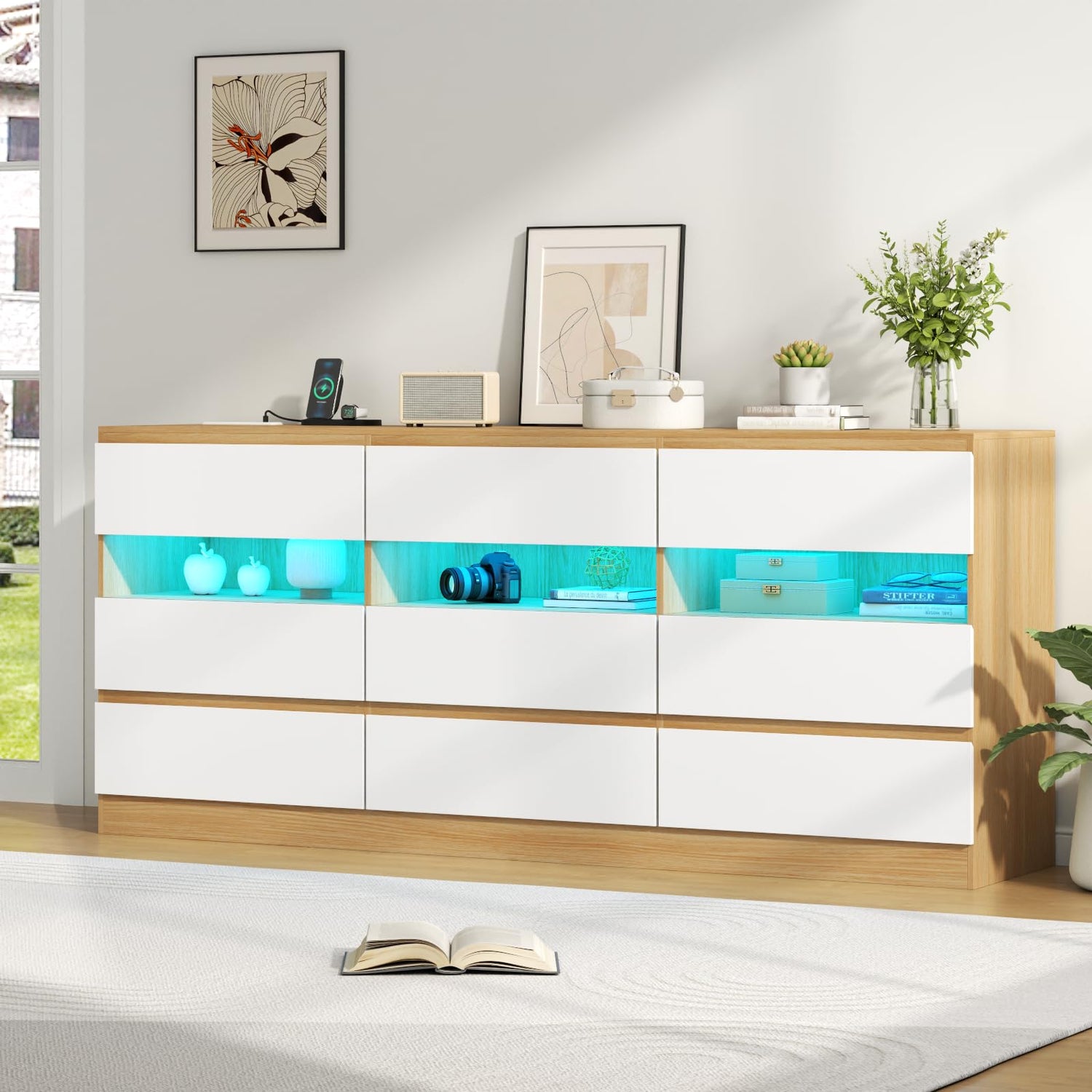- 【Sleek & Versatile White & Light Wood Design】Add a touch of modern elegance with the Loomie White & Light Wood 9-Drawer Dresser. Its minimalist design, with smooth, streamlined surfaces and subtle finger-pull handles, creates a clean, uncluttered look. The combination of a crisp white finish with light wood accents offers a versatile aesthetic that fits effortlessly into any bedroom decor. Not just a functional storage piece, this dresser serves as a stylish statement that elevates the entire room.