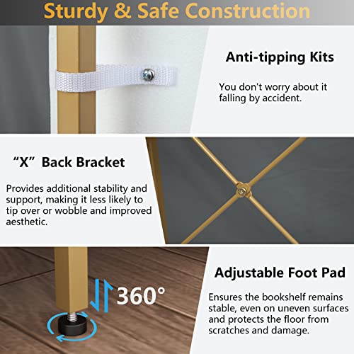 Loomie Gold & White Triple Wide Bookshelf with 13 Open Shelves - Modern Etagere Bookcase for Any Room