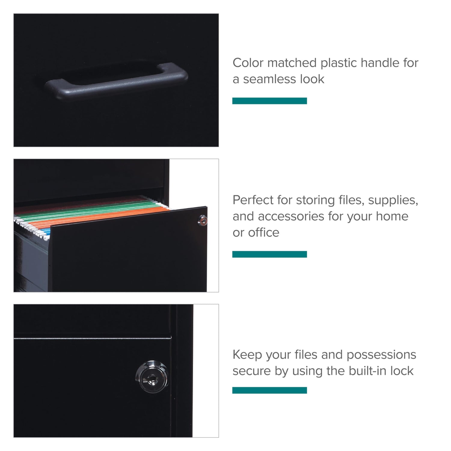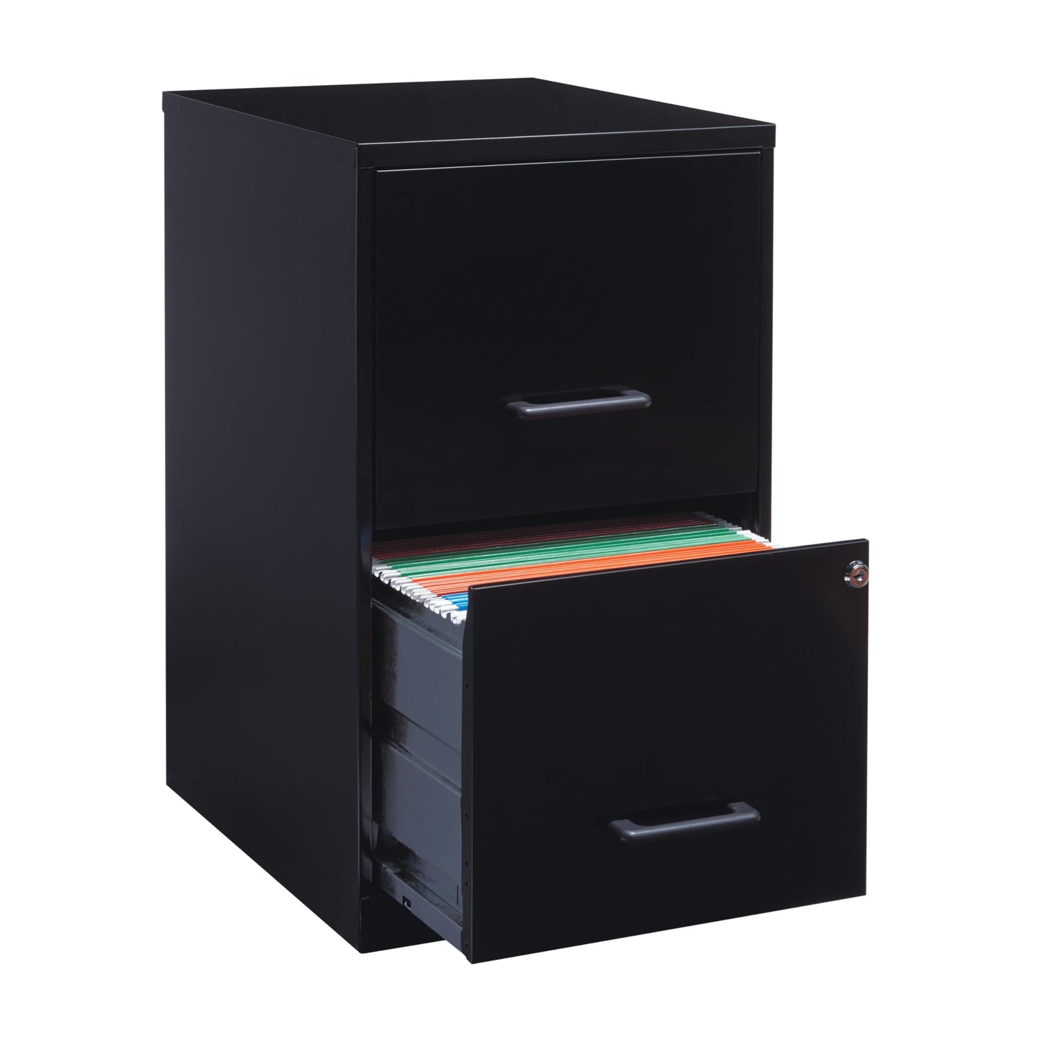 Details: Perfectly sized for your small or home office, the File Cabinet offers a dependable storage solution with two locking file drawers and steel construction with a baked enamel finish. Easily open and close using the smooth-glide suspension on the drawers. Lock secures both drawers. Store your important, moderately used documents. Full high-side drawers accommodate letter-size, hanging file folders. Convenient, 18" depth fits well under or beside your worksurface. Nonporous cabinet surface is easy to clean and disinfect. This stylish, vertical file cabinet brings organization and function to your home or office.
