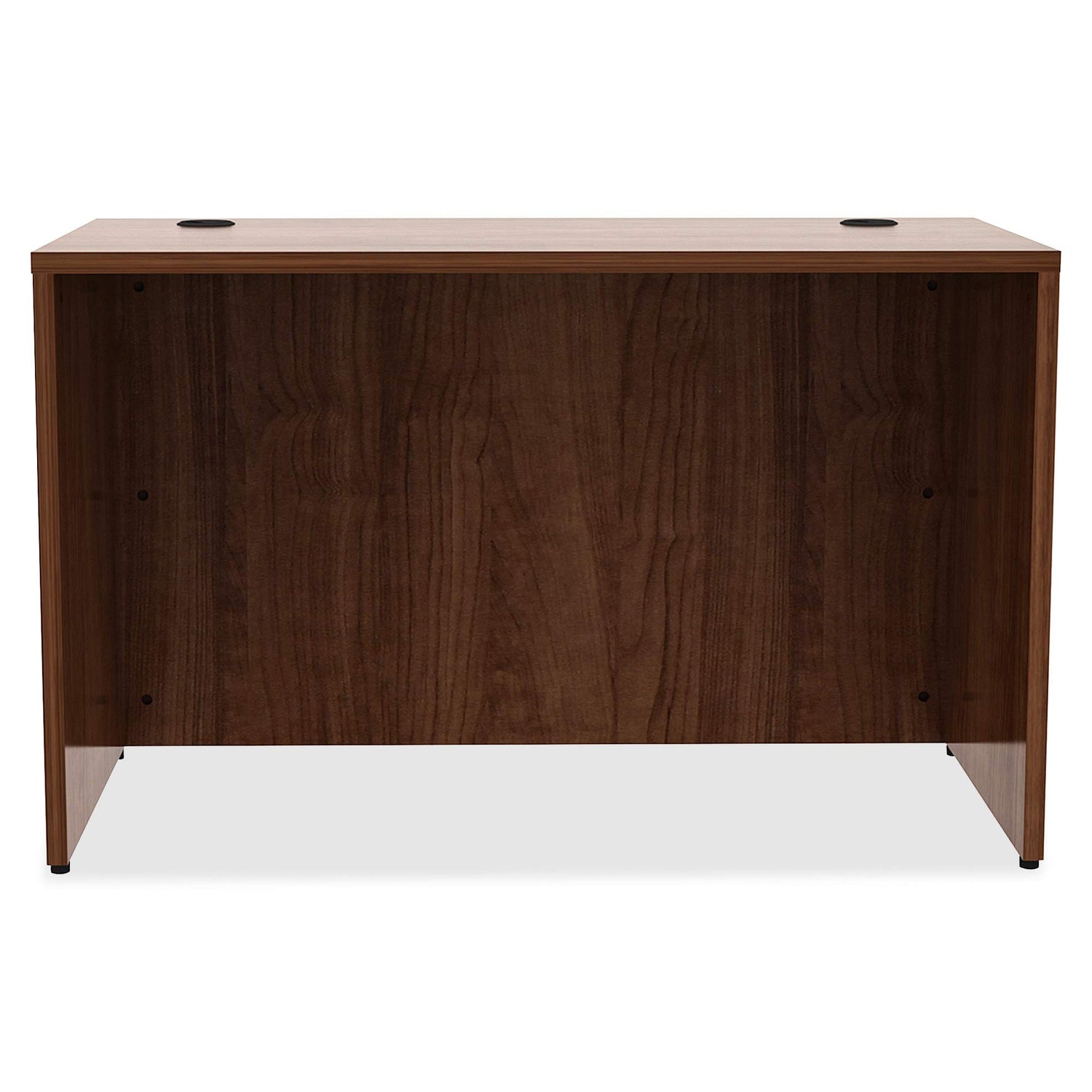 Details: Office furniture offers a high-quality, Walnut laminate construction with metal-to-metal, cam-lock connections. Design includes 3mm PVC edges and adjustable floor guides for stabilization. Furniture has pre-drilled holes with metal inserts for easy attachment. Brackets are designed for L-shaped configurations and bridge returns.