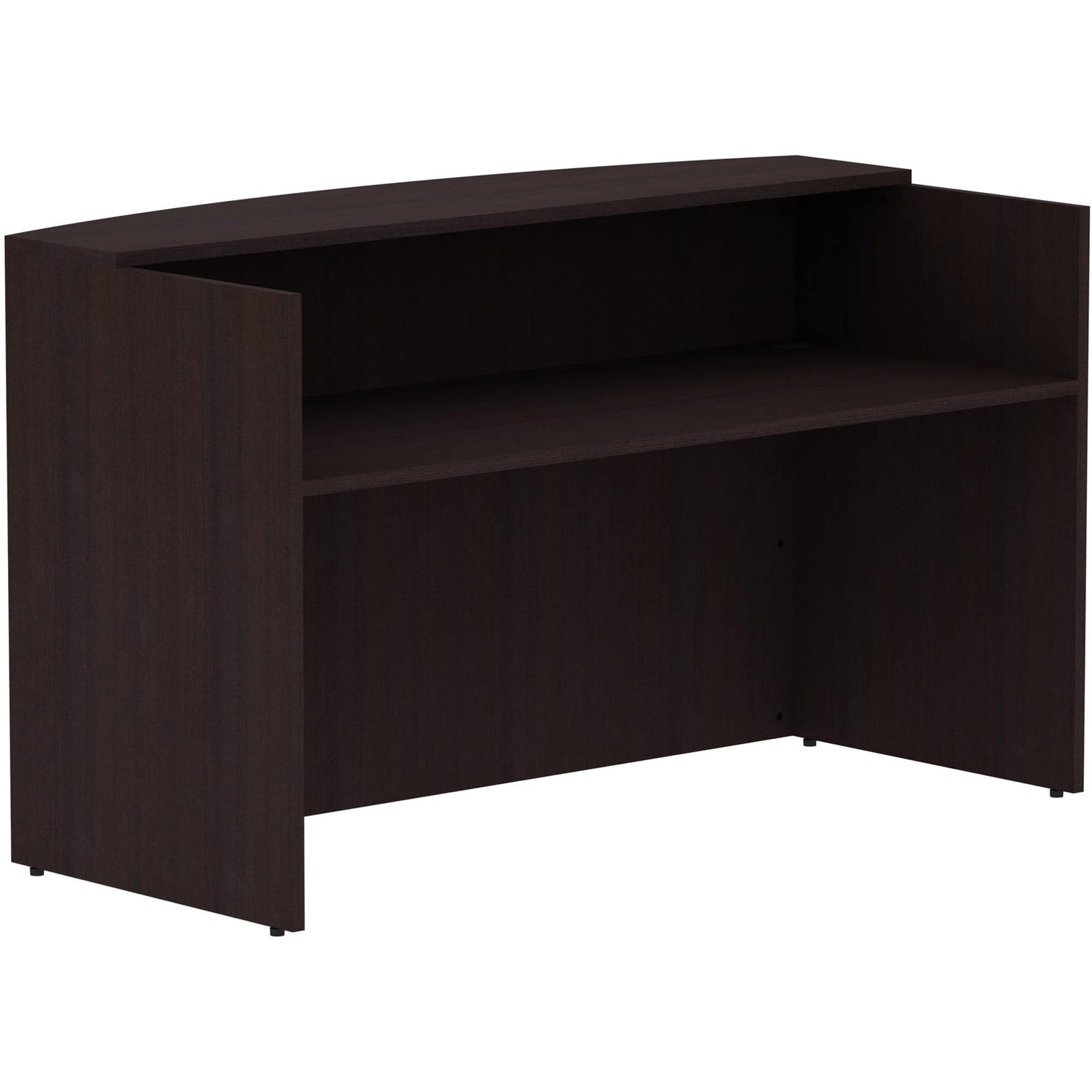 Details: Office furniture offers a high-quality, Espresso laminate construction with metal-to-metal, cam-lock connections. Design includes 3mm PVC edges and adjustable floor guides for stabilization. Furniture has pre-drilled holes with metal inserts for easy attachment.