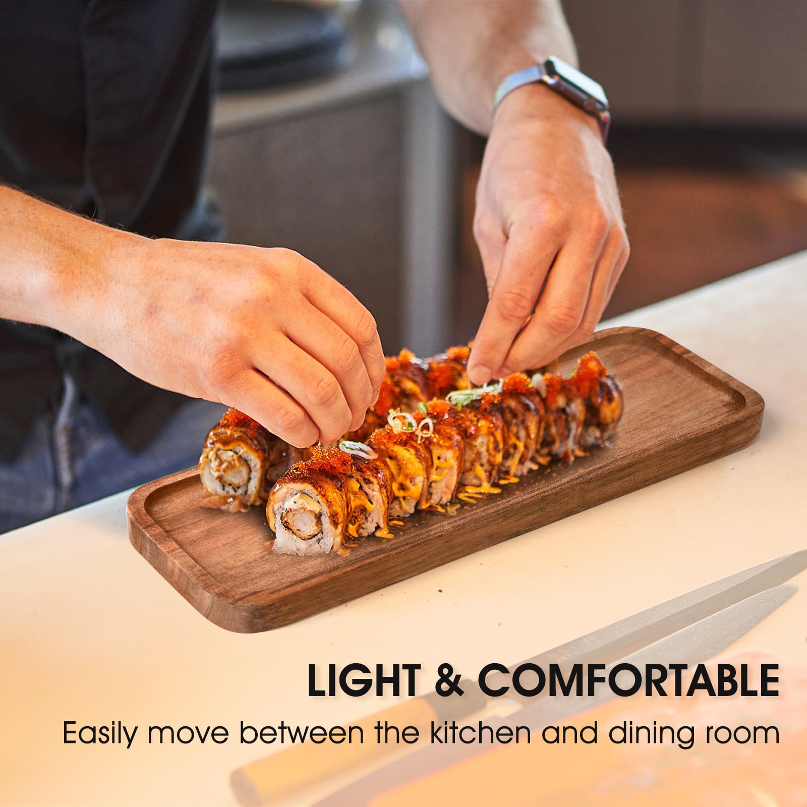 - 【Essential Kitchen Accessory】Whether you're hosting a casual family gathering, a formal dinner or a party, our acacia wood tray is perfect for serving all types of food, from sushi to appetizers and desserts, adding a classic American farmhouse style