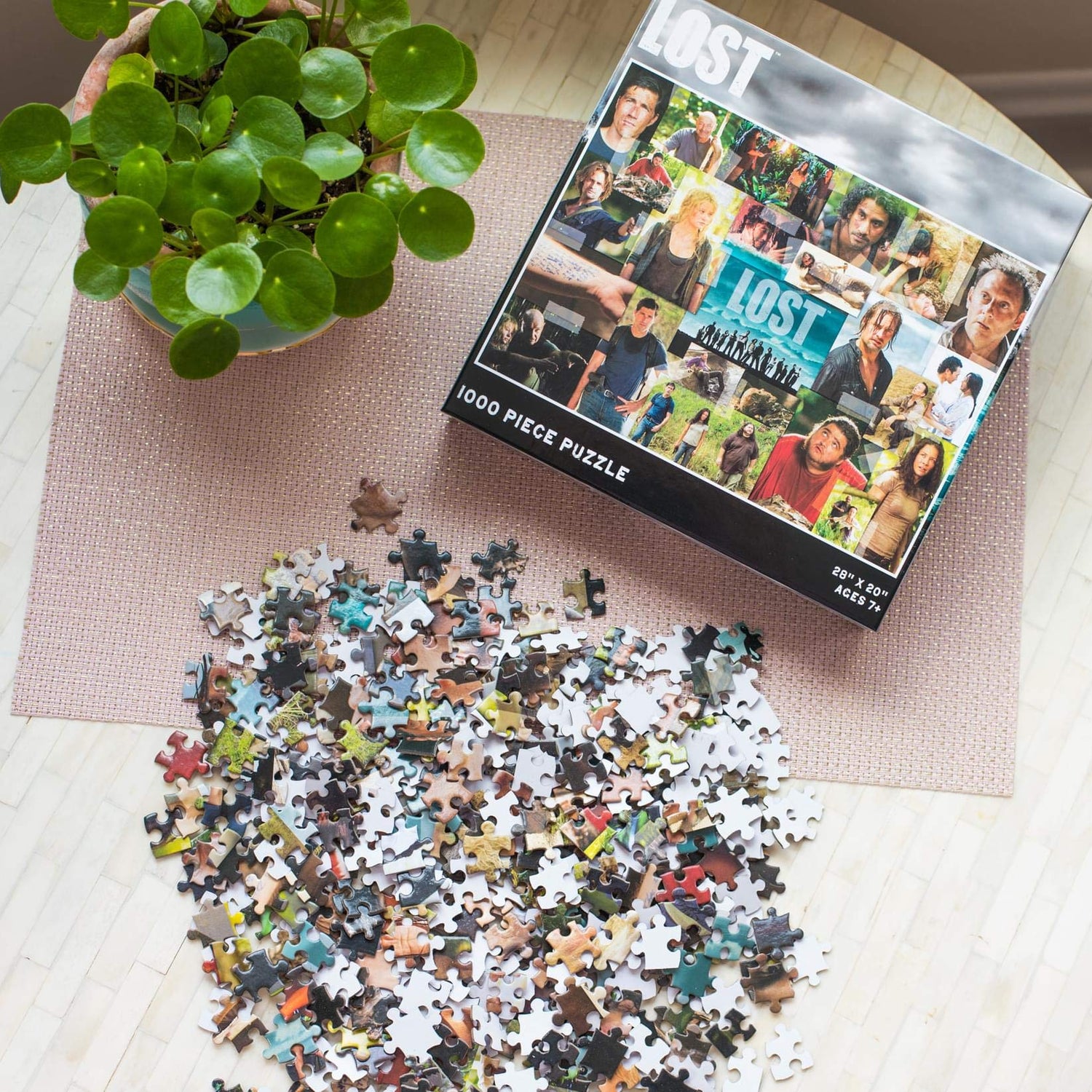 Details: THE ULTIMATE PUZZLING CHALLENGE Jump aboard with the passengers of the Oceanic Flight with this LOST 1000-Piece Jigsaw Puzzle. Try to unveil the strange secrets of the mysterious island as you assemble this challenging puzzle piece by piece. Measuring approximately 28 x 20 inches, the completed jigsaw puzzle is ideal for putting on display once assembled. Inspired by the hit TV show LOST, the puzzle features a randomly arranged photo collage of popular characters that appeared throughout the series. Have fun spotting fan-favorite characters as you assemble the image, including Ben Linus, Claire Littleton, Sayid Jarrah, Hugo Reyes, and many others. THE PERFECT FIT Specially made from 100% recycled puzzle board material, the premium construction provides a top-quality building experience. The precision-cut jigsaw pieces are designed to snap easily into place, ensuring a satisfying and seamless interlocking fit. You never have to worry about losing any pieces, which are safely secured inside a bag and packaged in a full-color box that shows you the finished image for solving. Host a family game night or make it a personal challenge to complete this LOST puzzle solo.