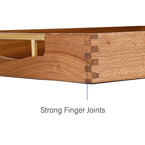 LotFancy Wood Serving Tray, 17x13”, Sapele Mahogany Large Food Tray with Gold Handles, Decorative Wooden Tray for Living Room, Ottoman, Coffee Table,
