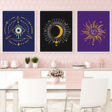 Louise Maelys 3 Set Tarot Embroidery Kits for Beginners with Sun Moon Evil Eye Pattern,Adults Starter Cross Stitch Kit DIY Needlepoint Kits