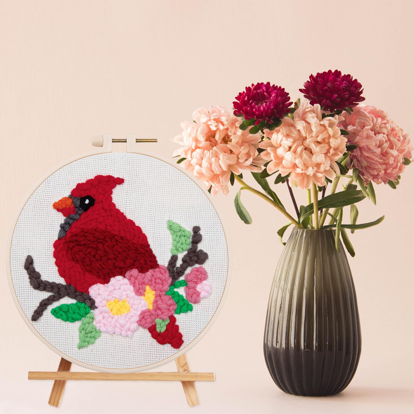 Louise Maelys Beginners Punch Needle Kits,for Starter Adults,Rug Cross Stitch Kit Tool Including Handle Embroidery Pen,Cloth,Hoop,Threads and Instruction-Cardinal Bird Pattern