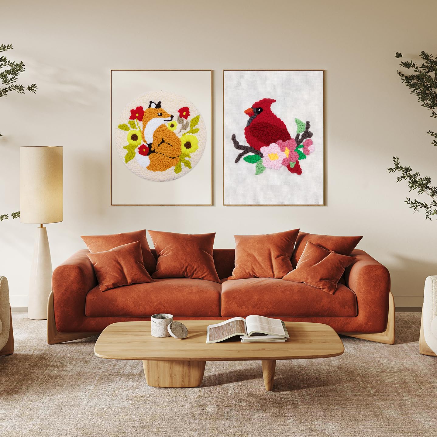 - Cute cardinal bird floral patterns:The punch needle cloth is printed funny Cardinal cherry flower pattern,for ages 7-13 girls and above.Notice: The pattern is made of special ink, meet the water will disappear, do not touch water before finishing
