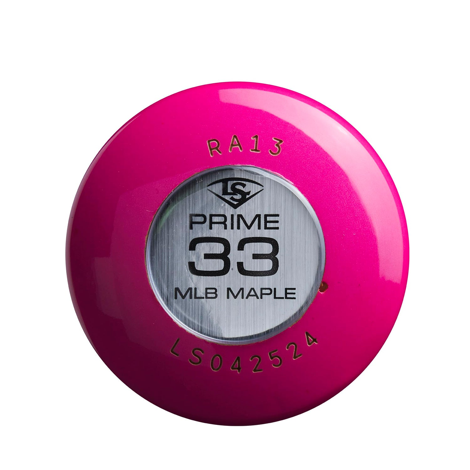 Details: The Pro Prime Party Animals RA13, a maple baseball bat with a slightly end-loaded swing weight preferred by Venezuelan superstar Ronald Acuna Jr., embraces its role as The Savannah Bananas' Biggest Rival with a neon pink AJ10 handle and black I13 barrel. Craftsmen apply a new surface-hardening technique, the Professional Series Finish and a specialized UV light treatment to all 2024 Prime wood bats, resulting in bats 30% harder than previous Louisville Slugger Prime models. The Pro Prime Party Animals RA13 is accompanied by an industry-leading 75-day limited warranty. Restrictions apply. Visit the Limited Warranty page on slugger.com for complete details.