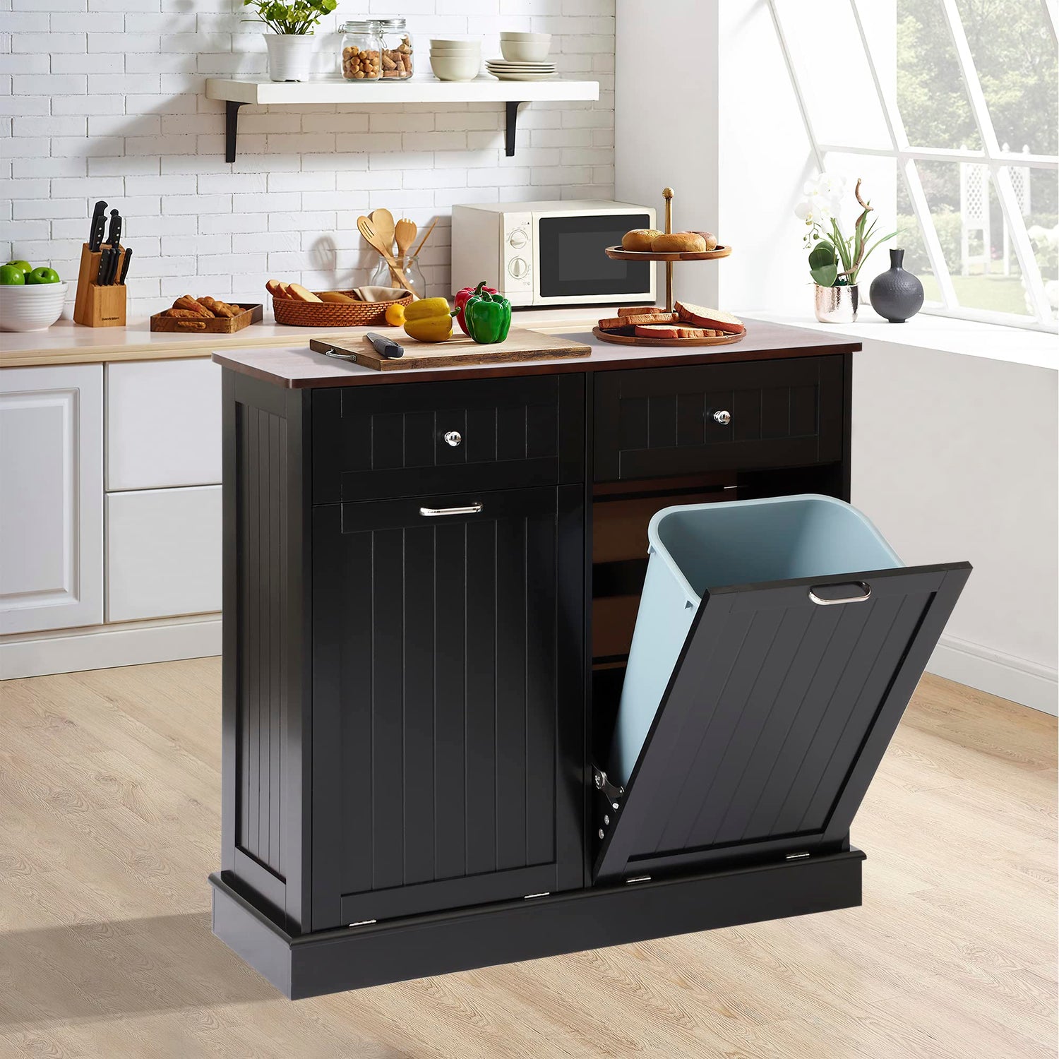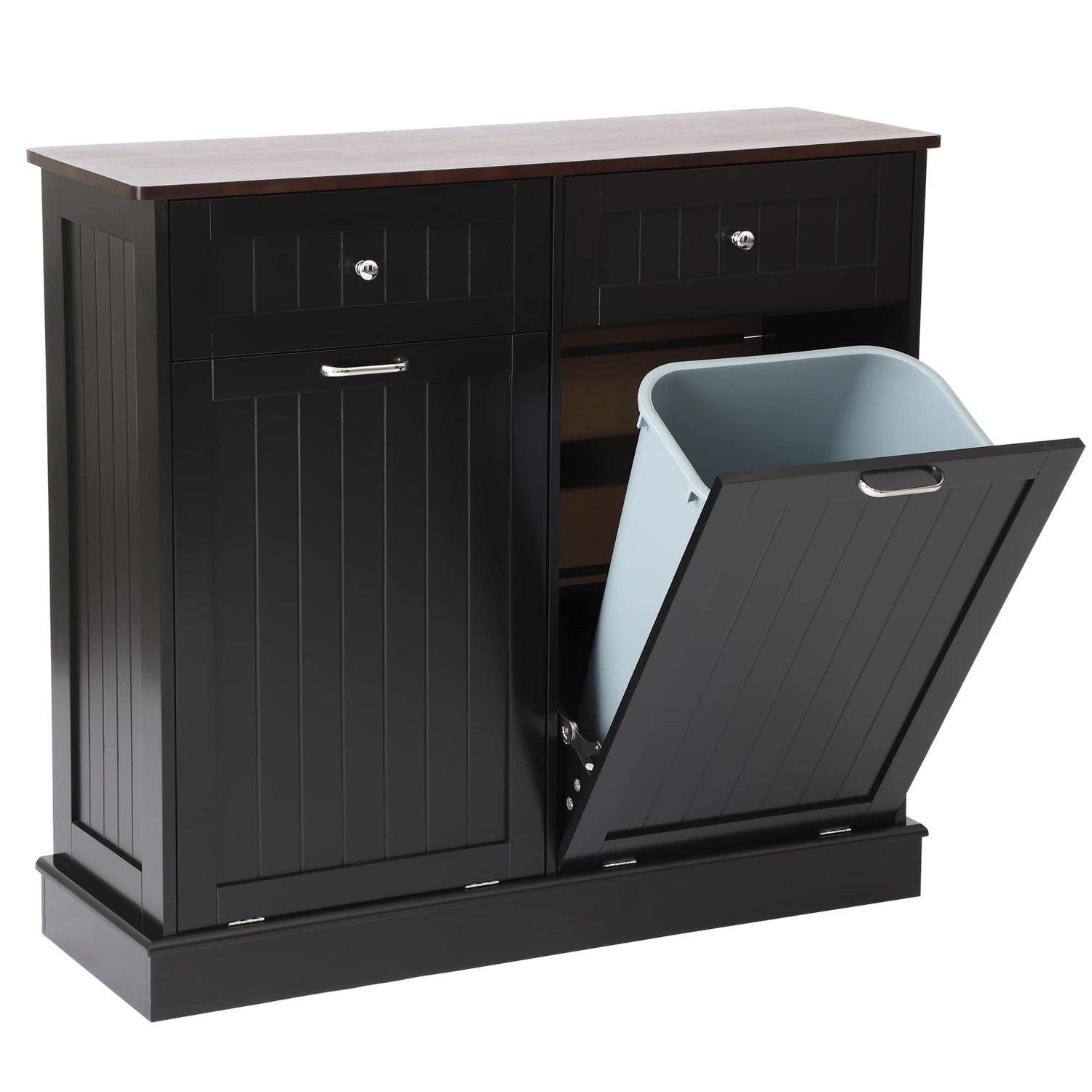 LOUVIXA Tilt Out Trash Can Cabinet Dog Proof with Double Wood Hidden Trash Can Holder, Kitchen Free Standing Recycling Cabinet(Black)