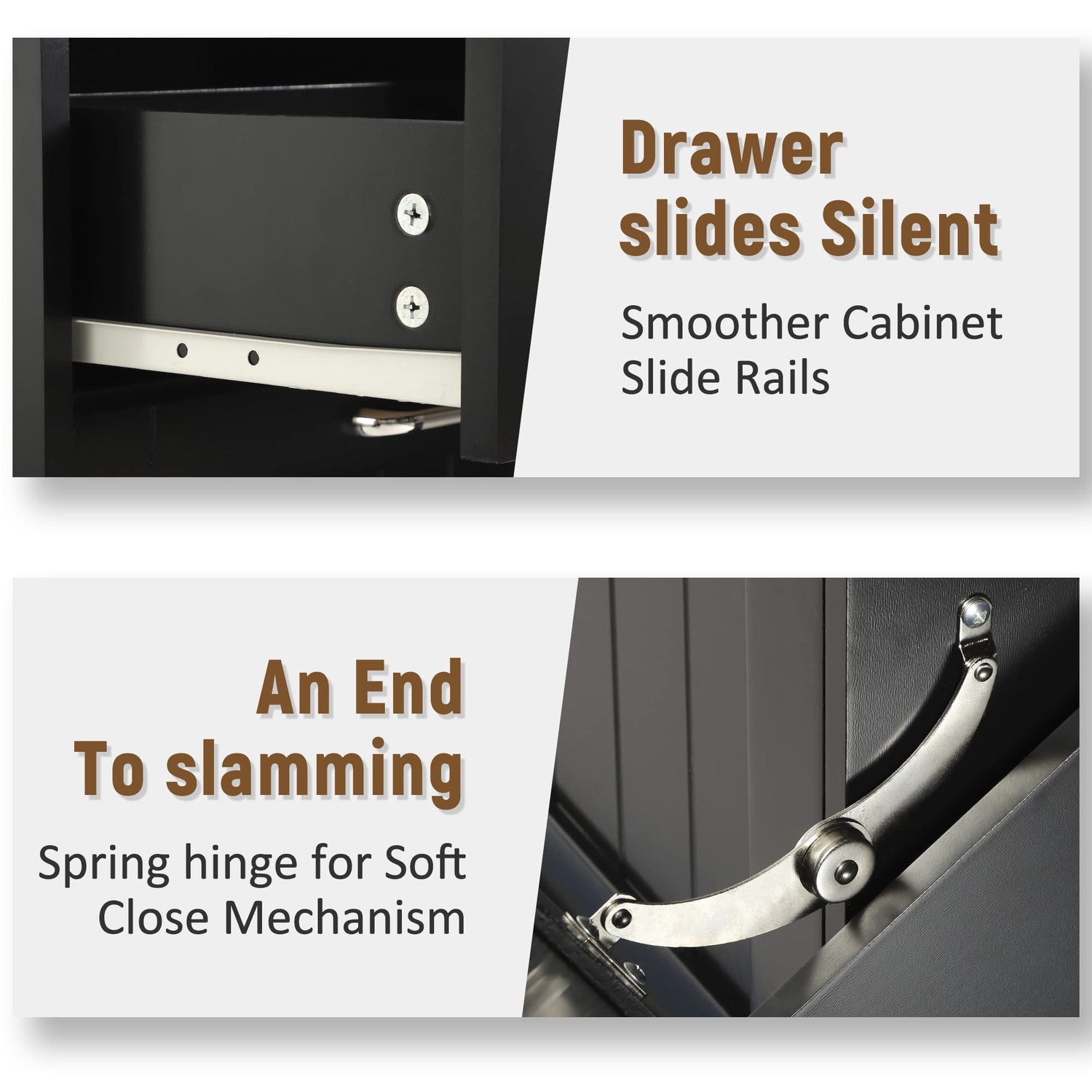 - 🏘️ Exquisite Material: Mainly composed of MDF, sturdy frame creates a stable cabinet which has wear resistant, rust resistant hinges; high-quality sliding drawers; solid wood top surface is durable extra counter space and cleans easily.