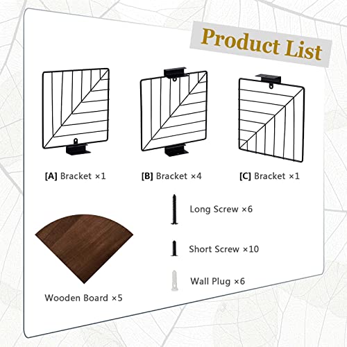 Love-KANKEI Corner Shelf Wall Mount of 5 Tier, Rustic Wood Floating Shelves Wall Shelves for Bedroom Living Room Bathroom Kitchen Office and More Dark Walnut