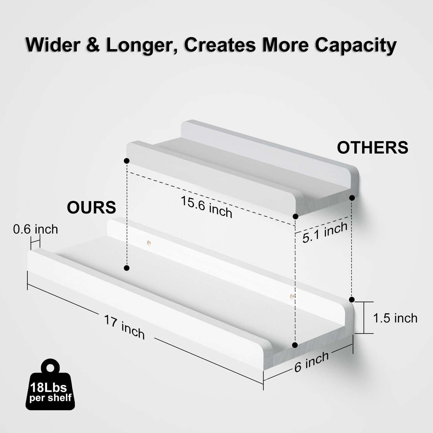 - Slide Protective Ledge - Different from other floating shelves, it has professional design with protective ledge in the front, which will allow you to stably display your items, including picture frame, ornamental, and houseplants, protecting them from creeping down.
