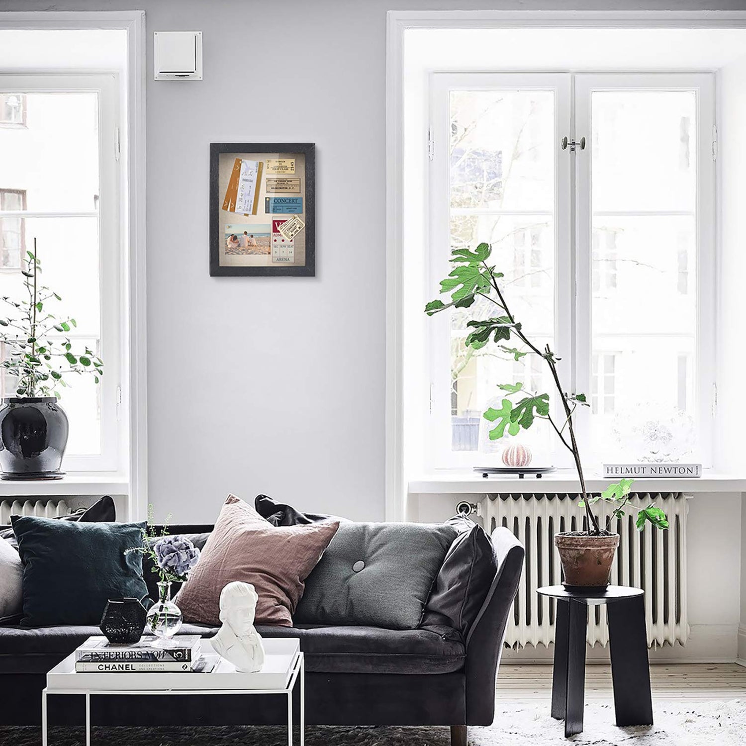 - Memory box - Inside the frame is a linen cloth with pins so you can arrange a personalized collage with photos, cards, concert tickets, medals, dried flower and handicrafts, etc. Prefect choice to share your most cherished moments and memorabilia.