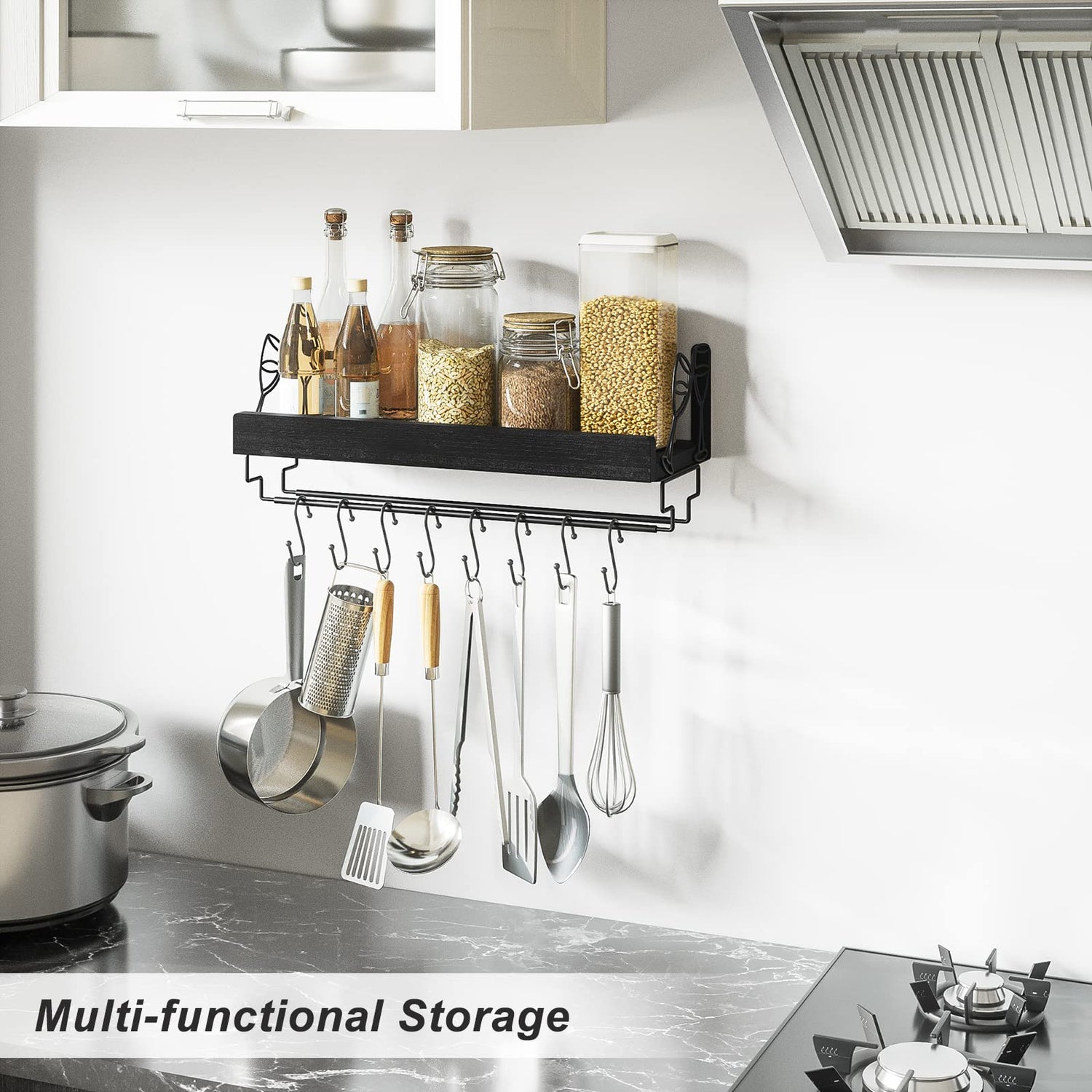 - Add Extra Wall Space: The overall size of this wall shelf is 17.32 x 6.5 x 6.46inch, owning full space to hold your wine, stemware and other daily items, free up from mess and clear up your tabletop, add more space to you to store items.