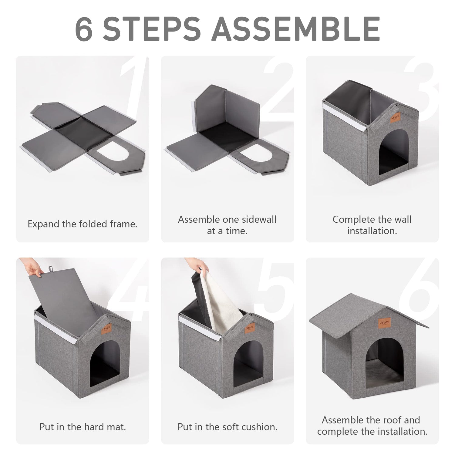 - Easy to Assemble & No Tool Needed: This collapsible outdoor cat house can be easily disassembled and installed in a matter of seconds. Only by the velcro to connect, no other tools needed. No matter where you set up your outdoor cat house (in the garden, in the barn, in the forecourt or in the house), it won't make any difference to your cat.