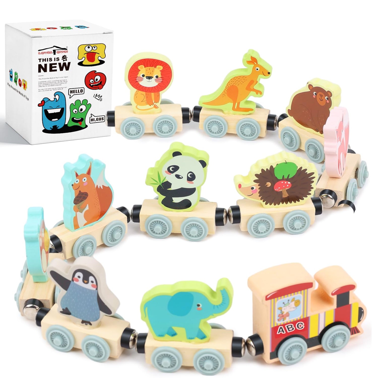 LovesTown 11PCS Magnetic Wooden Animals Train Set, Montessori Toys for Toddlers Toys for Preschool Learning Activities Birthday Kids Boys Girls