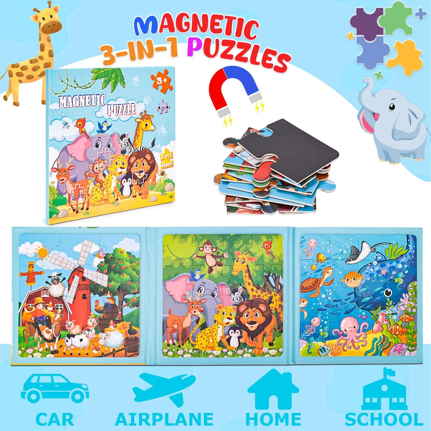 LovesTown Magnetic Puzzles for Toddlers, Travel Puzzle for Kids, Magnetic Puzzle Book for Boys and Girls, Animal Educational Learning Magnet Game for Road Trip