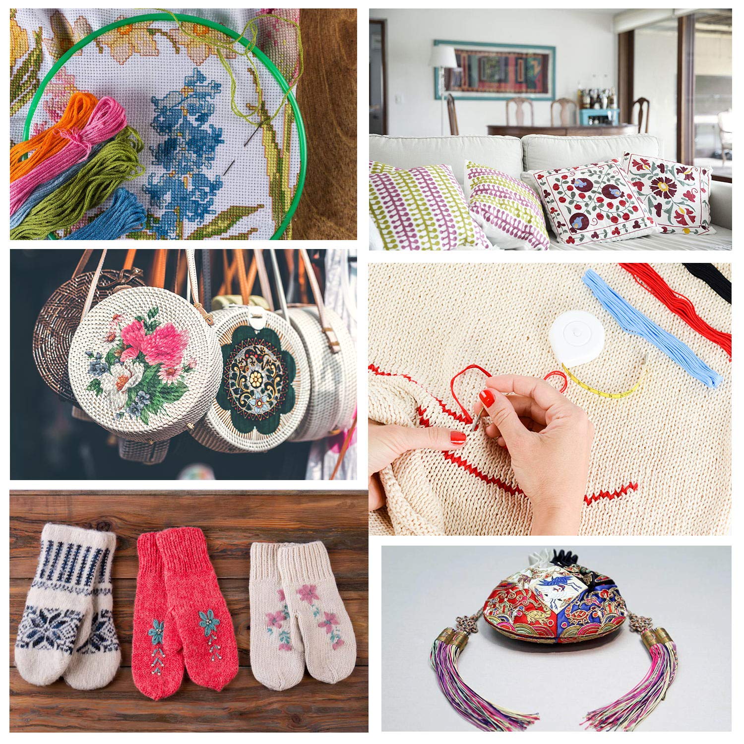 - Embroidery can be used to make bracelets, yarn for bracelets, sachets, tassels, cushions, birthday cards, decorations, dolls, gloves, scarves and so on. It is a good choice for parents and children to participate in handcrafting together. It not only enhances children's practical ability, but also stimulates children's imagination of handcrafts.