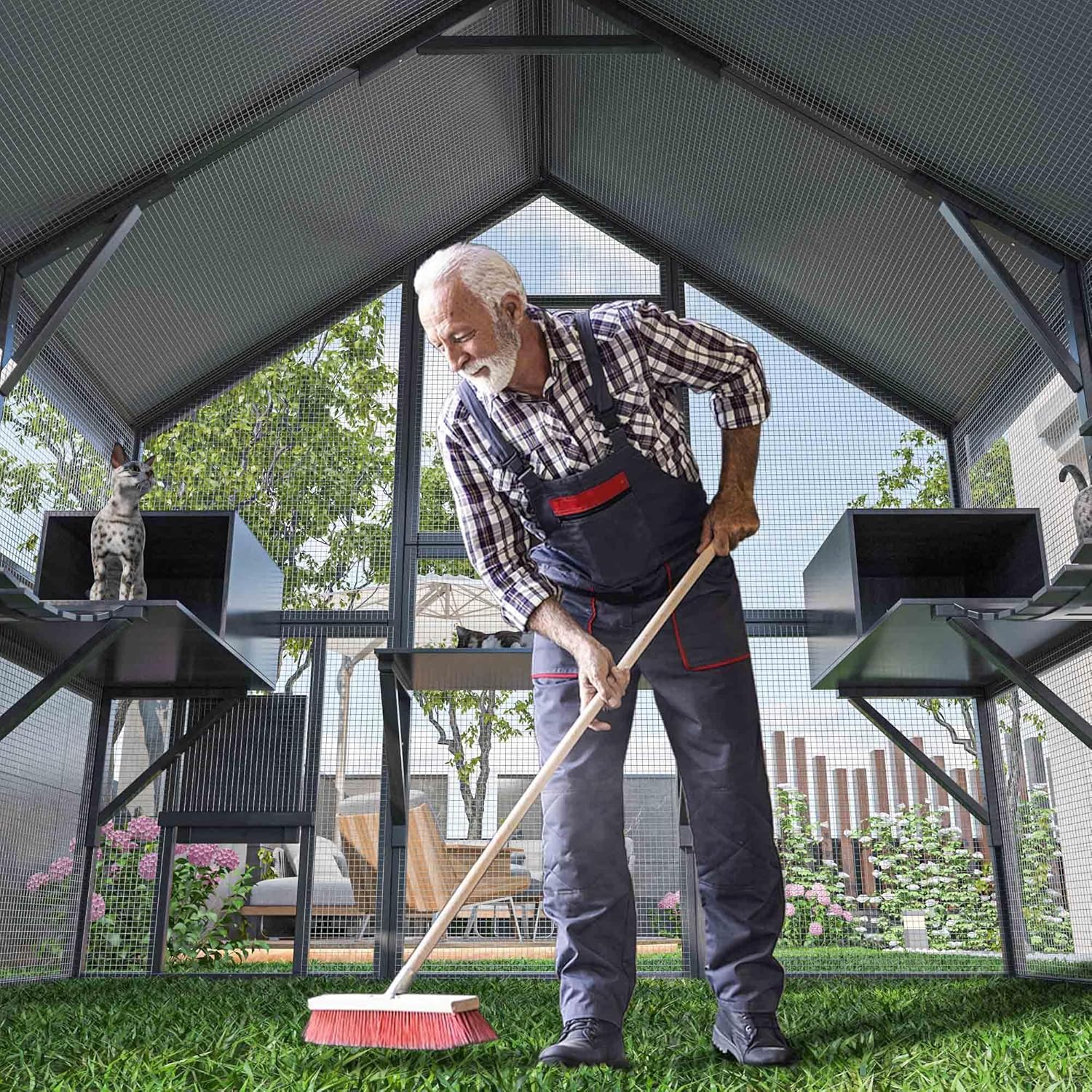 - 【Walk-in Style Catios】In addition to these fun features, the enclosure is also designed with your convenience in mind. The fully open enter door at 60" tall allows you to go inside and interact with your cats, making feeding and cleaning a breeze. The wire mesh provides transparent full sight around the cat for its curiosity and observer nature.