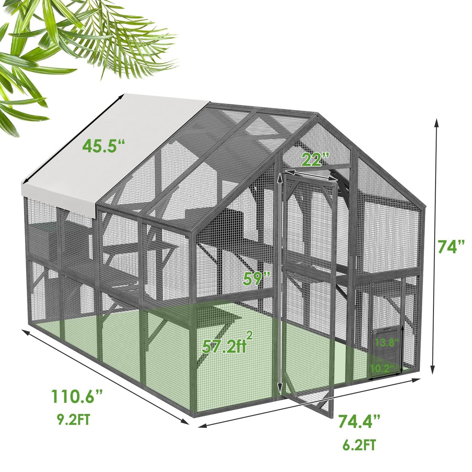 - 【Spacious Activity Area】 57.2ft² outdoor cat enclosure offers a large space and is perfect for multiple cats to play or lounge and relax in. Provide your cats space to roam around in the outdoors where they can hear the noises of nature and the world outside, using the spacious interior of this large outside cat house.