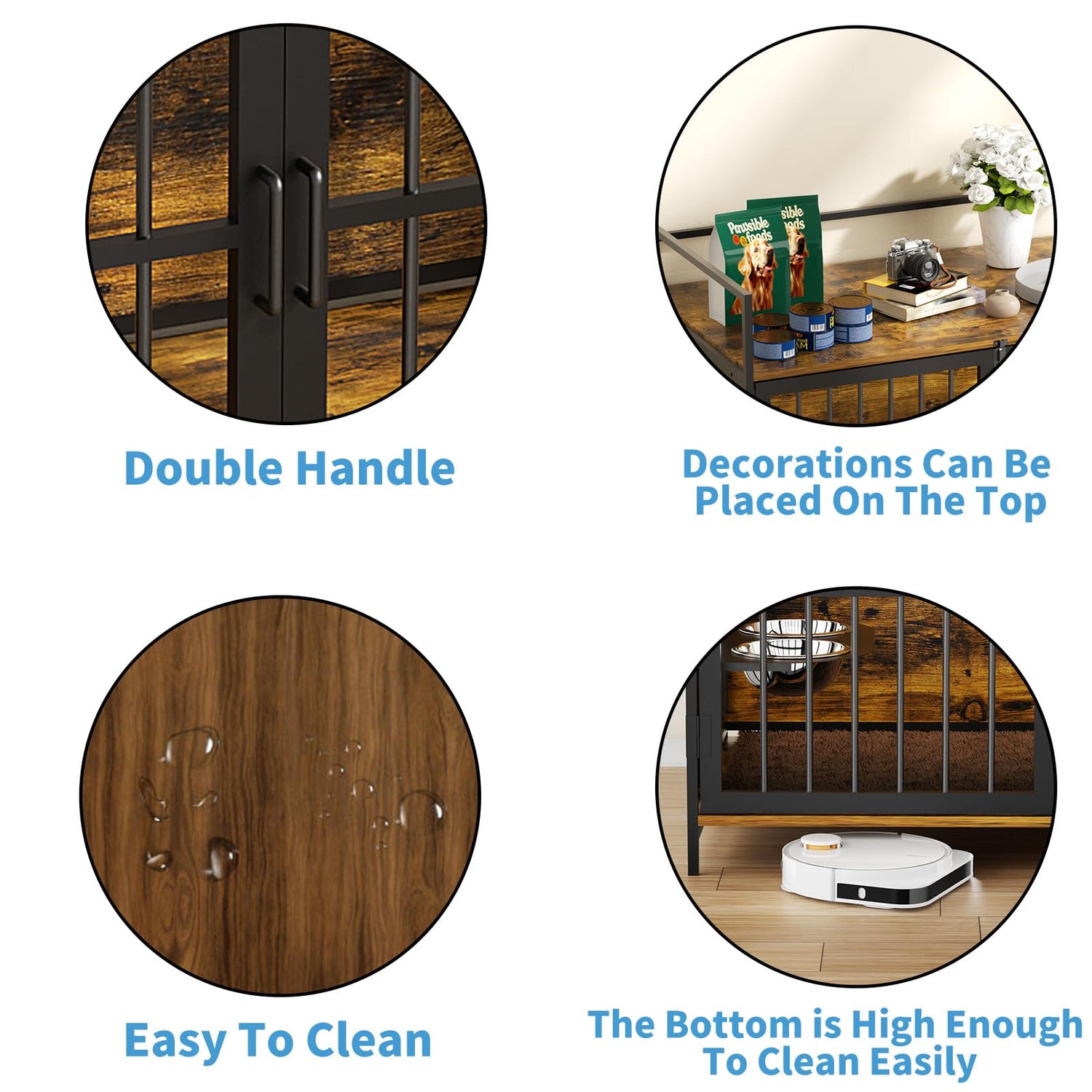 - MULTIFUNCTIONAL DOG CRATE TABLE — Simple and retro dog kennel furniture, suitable for various decoration styles. It is not only a dog cage for dogs, but also can be used as a side table, coffee table, or bedside table. The wide top can be used to place decorations or dog food, photo albums, small and medium-sized plants, magazines, etc