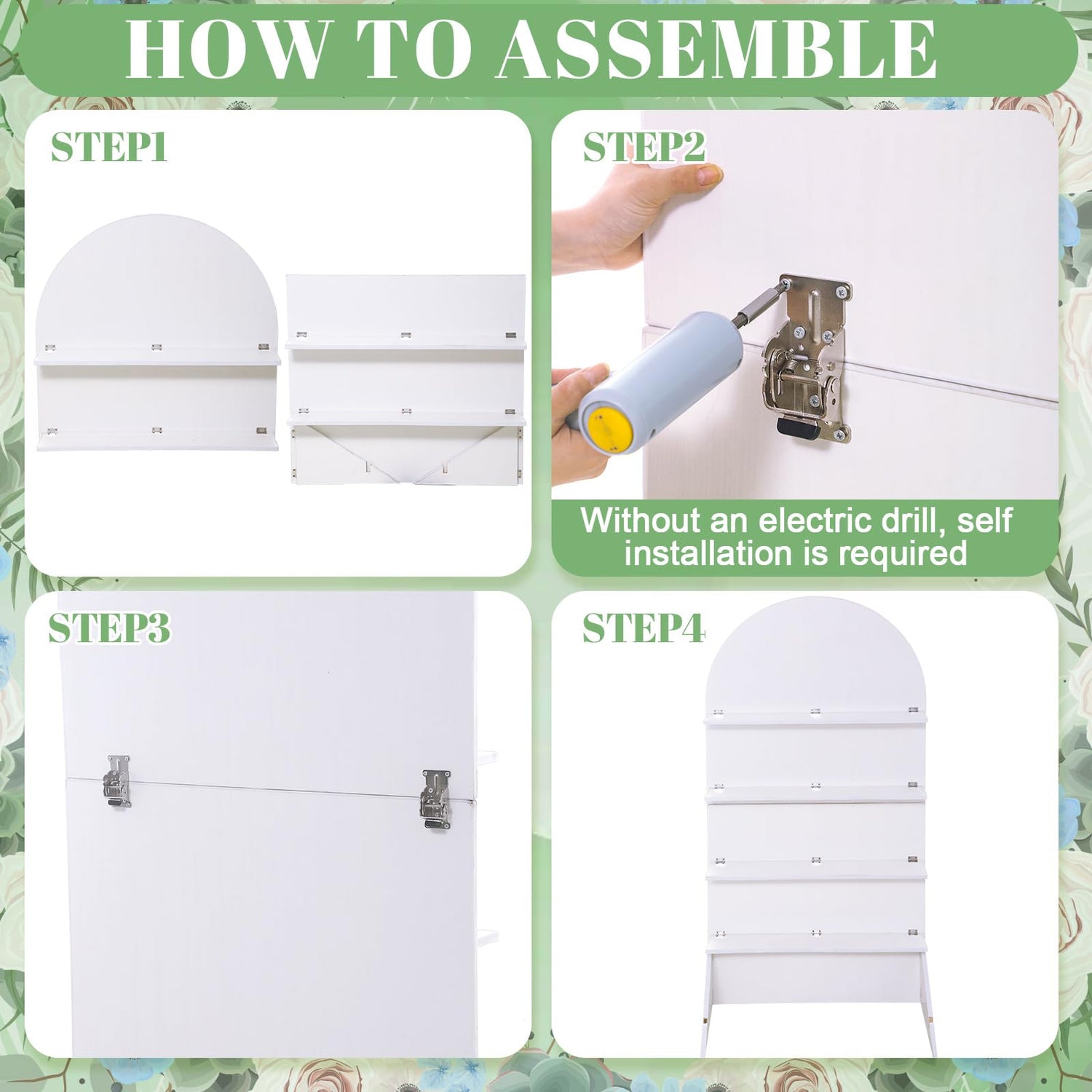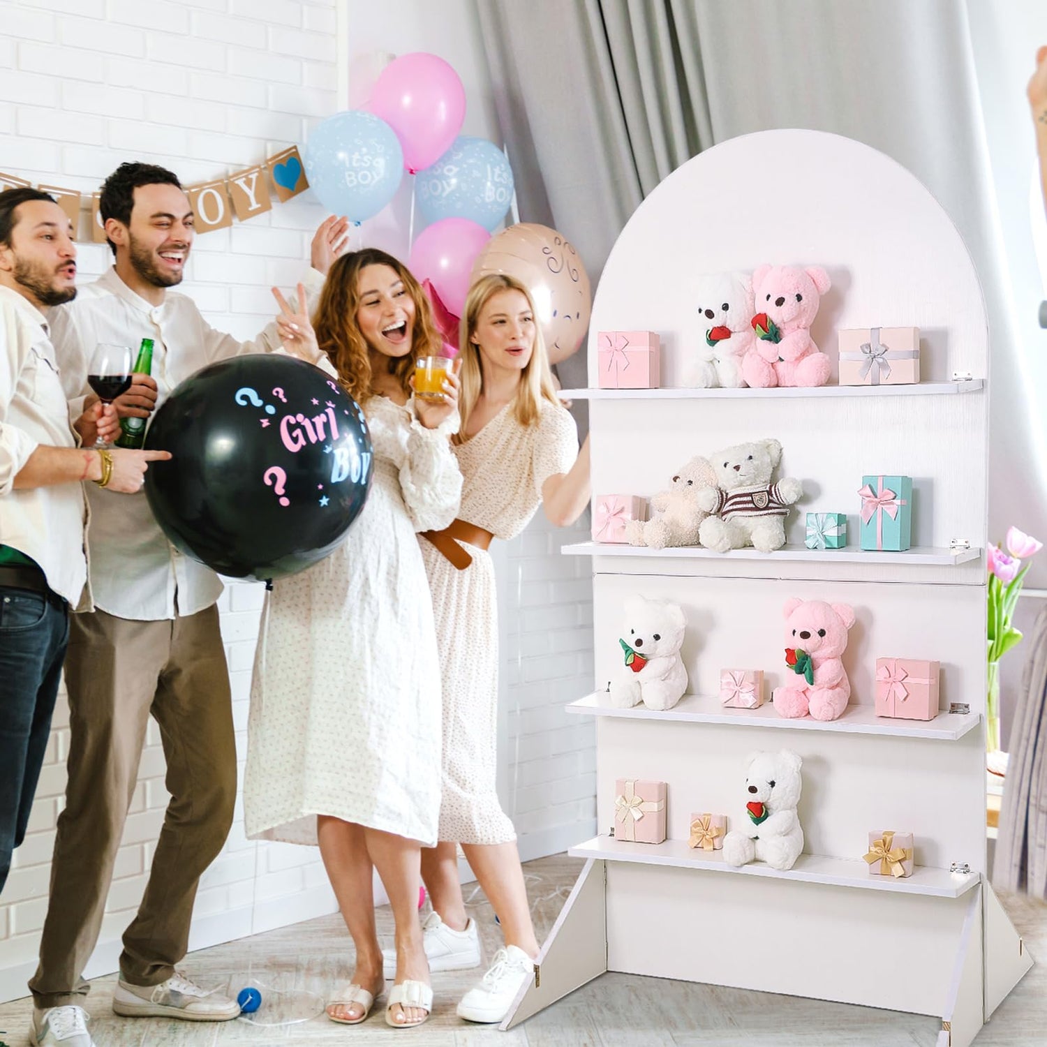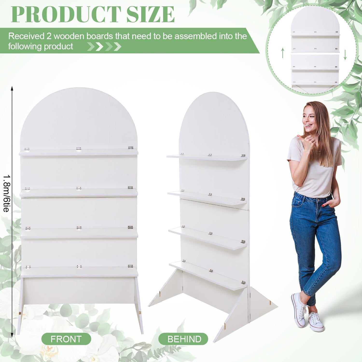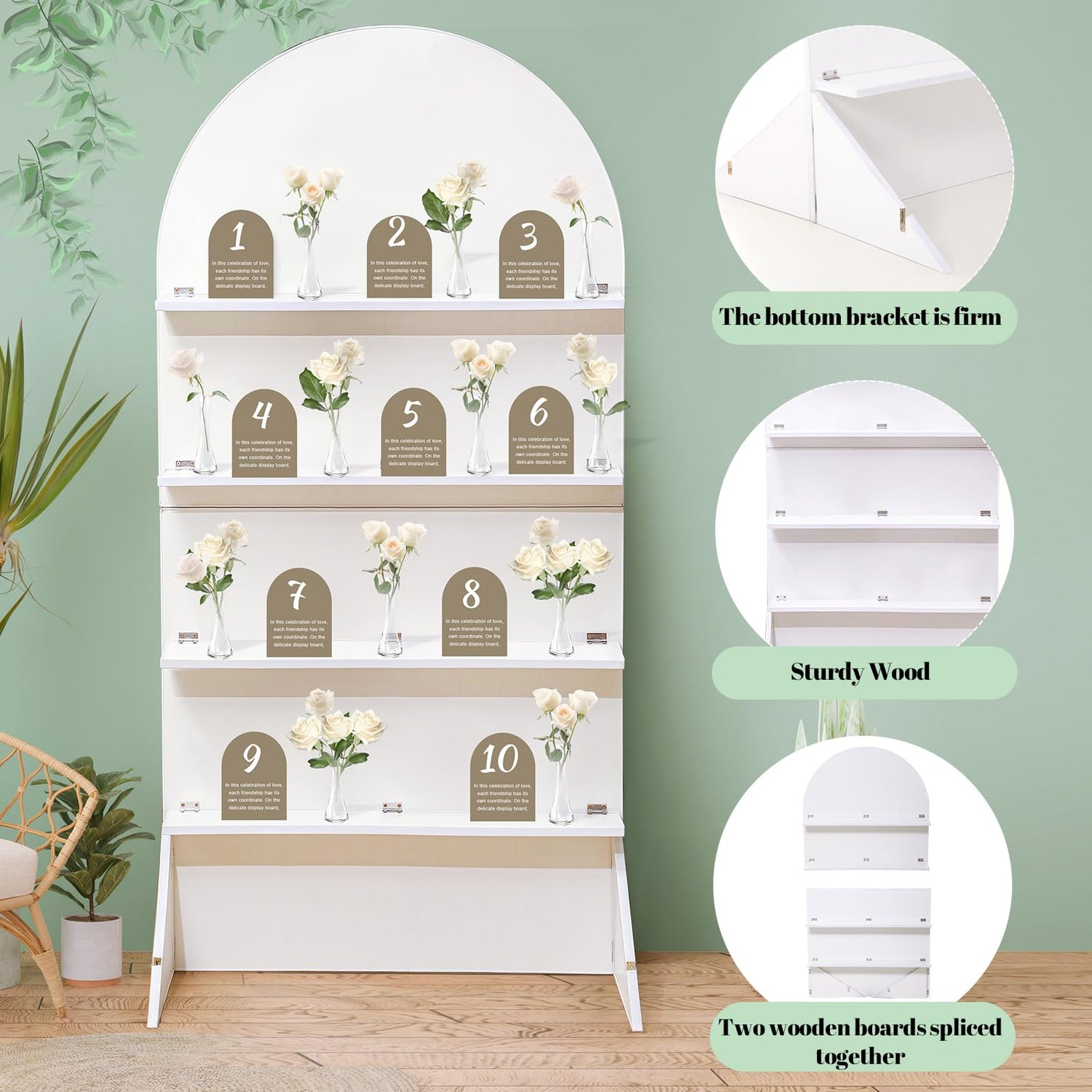 LOYIM 5.9 ft Wooden Arch Party Display 4 Tier Champagne Wall Foldable Treat Wall Display Backdrop Wedding Drink Shelves for Wedding Birthday Event Party Decor